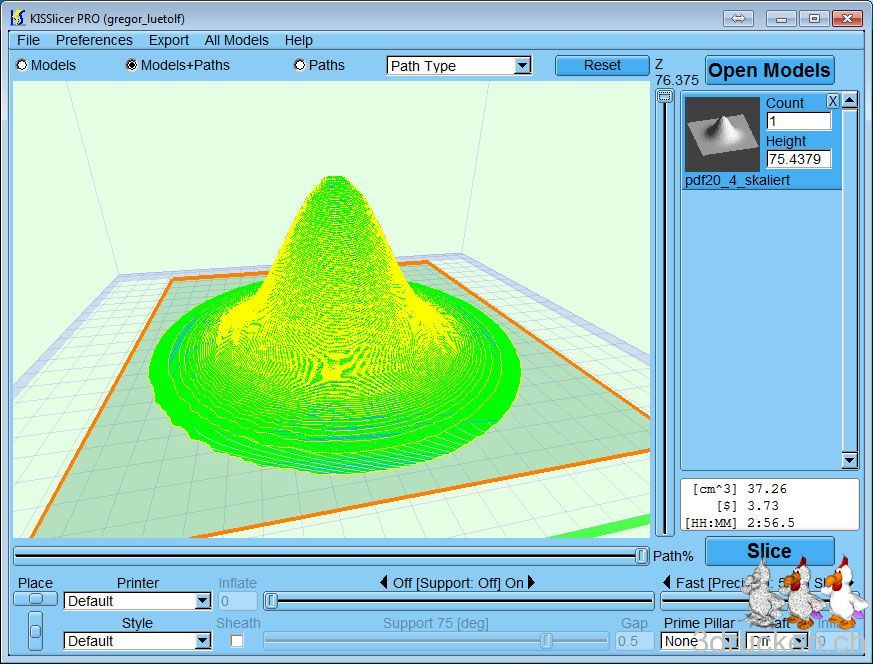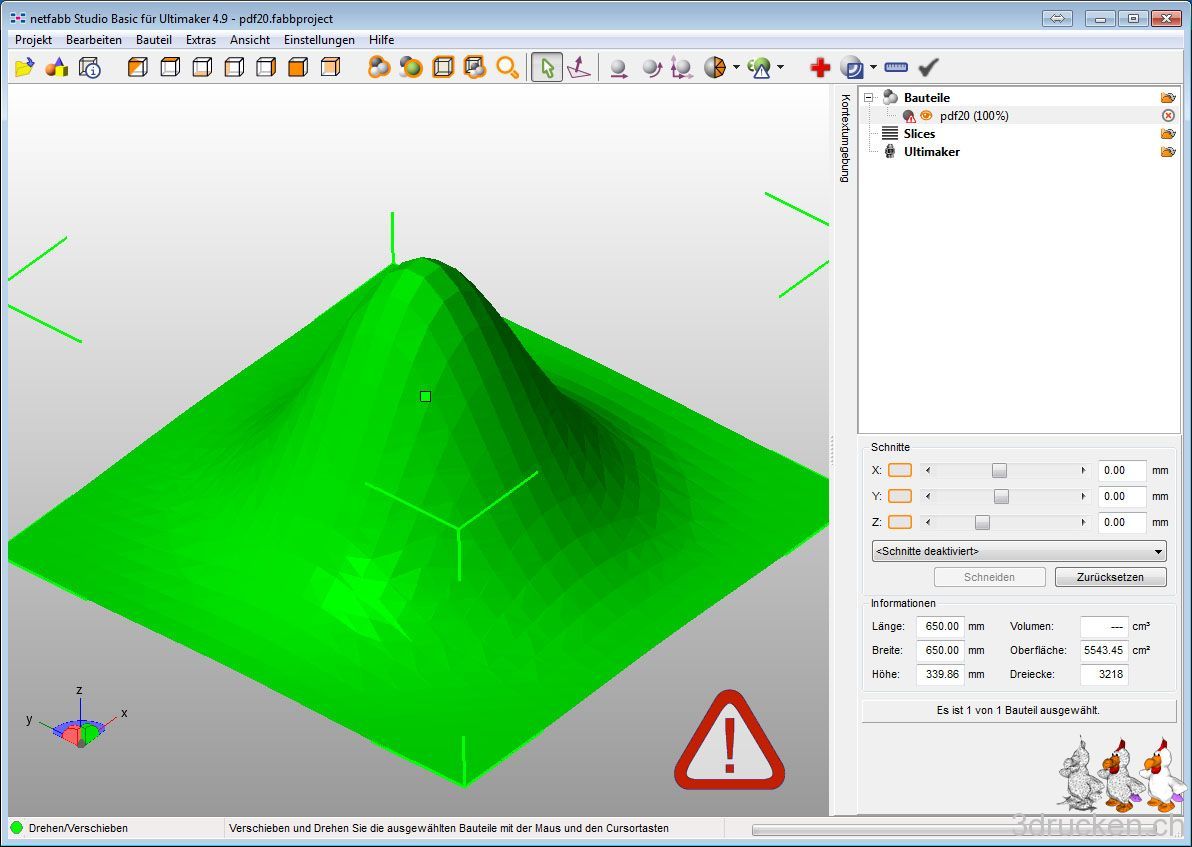 Eine Anfrage aus der Innerschweiz hat uns auf die Idee gebracht, mit unserem 3D-Drucker Mathematische Funktionen zu Drucken. Sowas könnte man sich für die Schule wohl auch denken, falls die Druckresultate zufriedenstellend sind. Hier das Beispiel der Gauß’schen Glockenkurve.