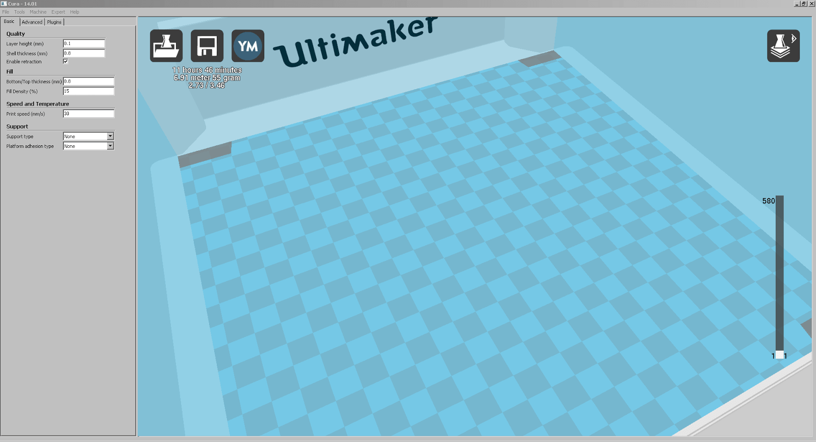 Ohne die Korrekturmethoden von Cura sieht das so erhaltende Modell nicht besonders druckbar aus. Um dies zu beurteilen, müssen wir die Ansicht in Cura erneut auf die Layer-Ansicht umschalten. Druckbar wäre das Modell zwar wohl schon, aber die Qualität würde den Erwartungen nicht genügen.