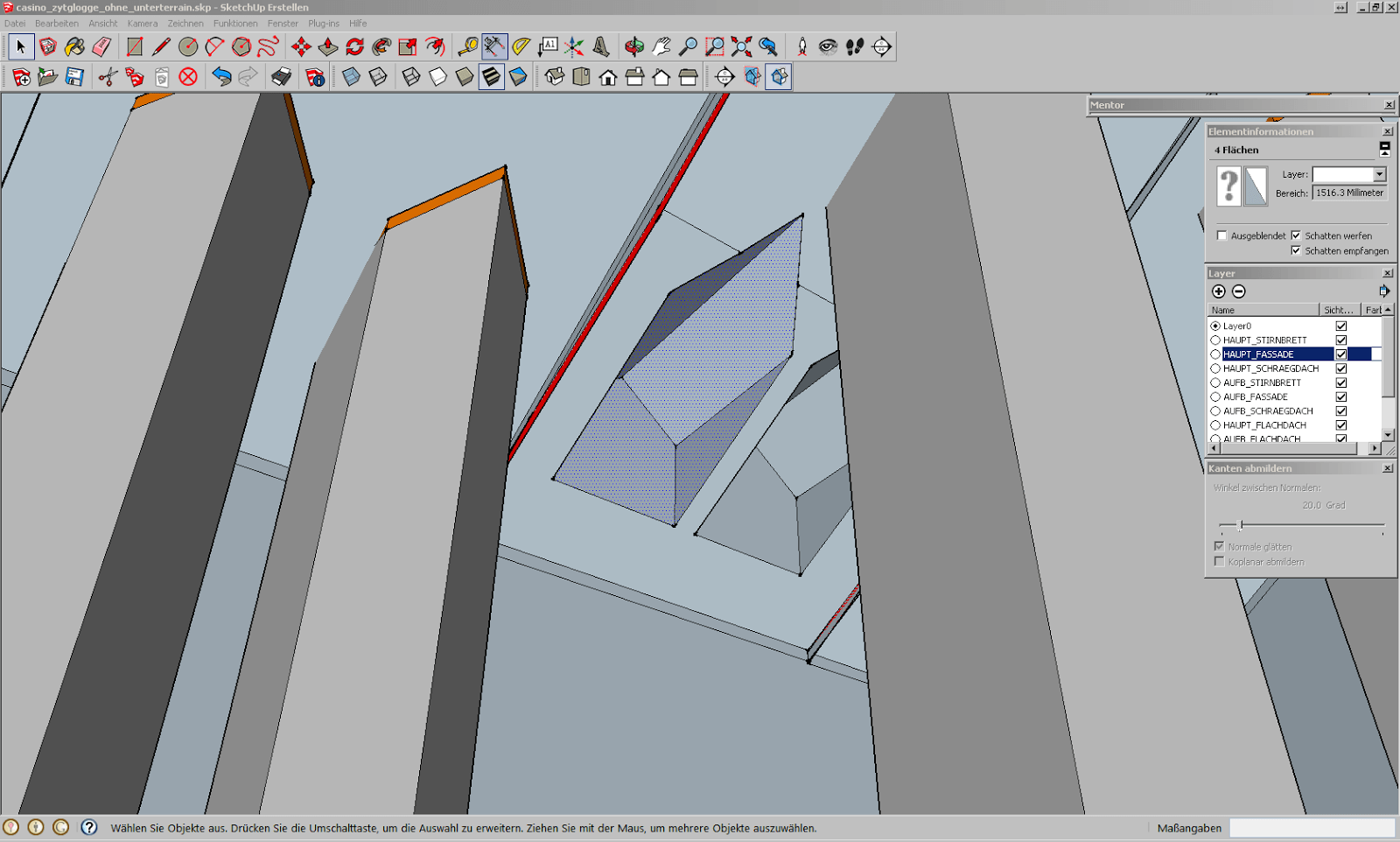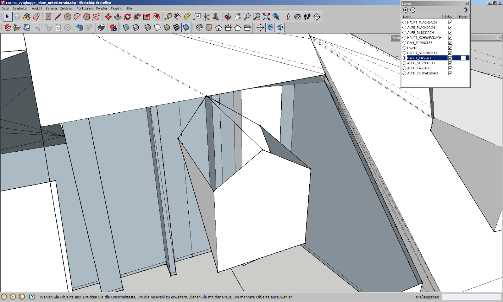 Als weitere Option prüfen wir nun das Löschen des Layers „Fassadeunterterrain“, da wir diesen zum Druck eh nicht benötigen.