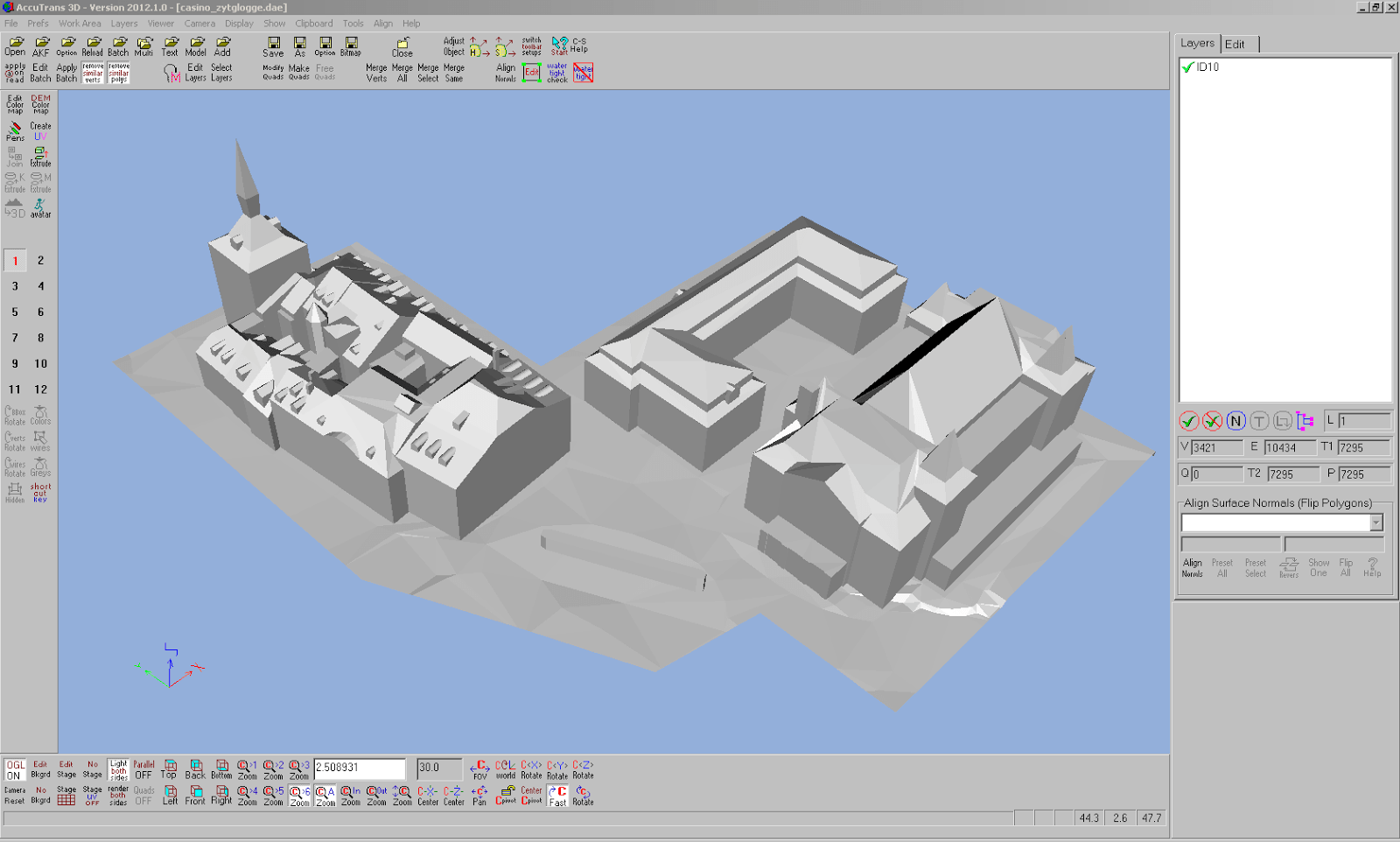 Danach exportieren wir das Modell im Collada-Format und importieren dieses in AccuTrans 3D, wo wir aus dem Modell ein unten abgeschlossenes Relief erstellen.
