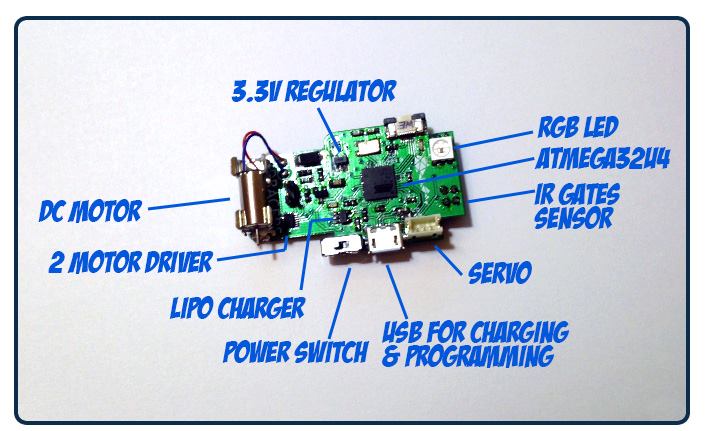 All zu viel ist über die Hardware noch nicht bekannt, nur dass sie wie ein Arduino via USB zu programmieren und der Akku zu laden sei. Es existieren insbesondere die beiden Fotos, welche auf Facebook veröffentlicht wurden. Kern des Boards soll ein Atmel AtMega32u4 sein.