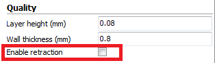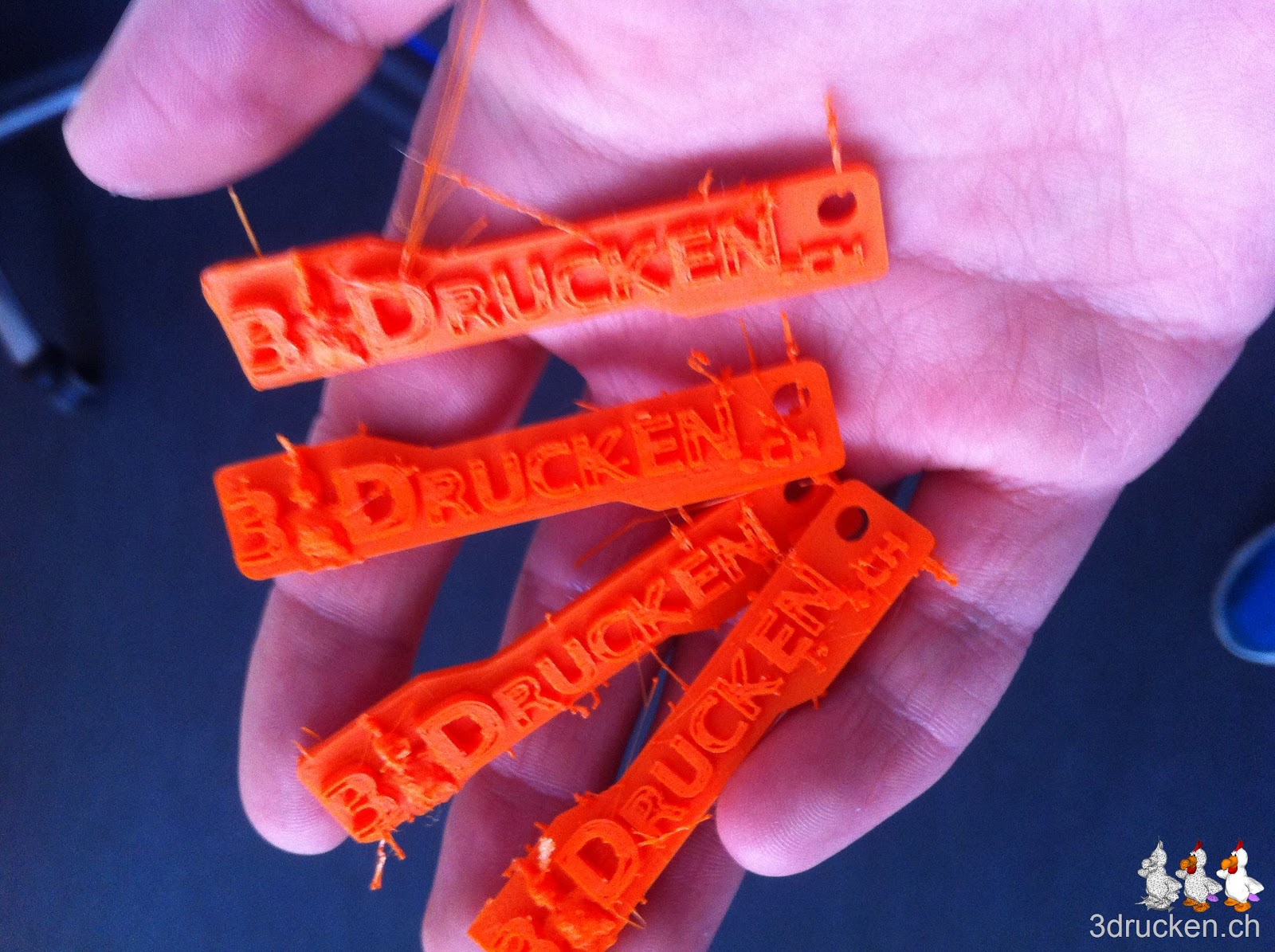 Wir druckten heute mehrere Give-Aways aus. Doch wir waren von der Qualität zuerst enttäuscht. Zwischen den Modellen zogen sich Druckresten dahin, die grosse Nachbearbeitung der Objekte erforderten. Nach einigem Überlegen entdeckten wir den Schönheitsfehler in Cura…die Retraction war nicht eingeschaltet (siehe letztes Bild).