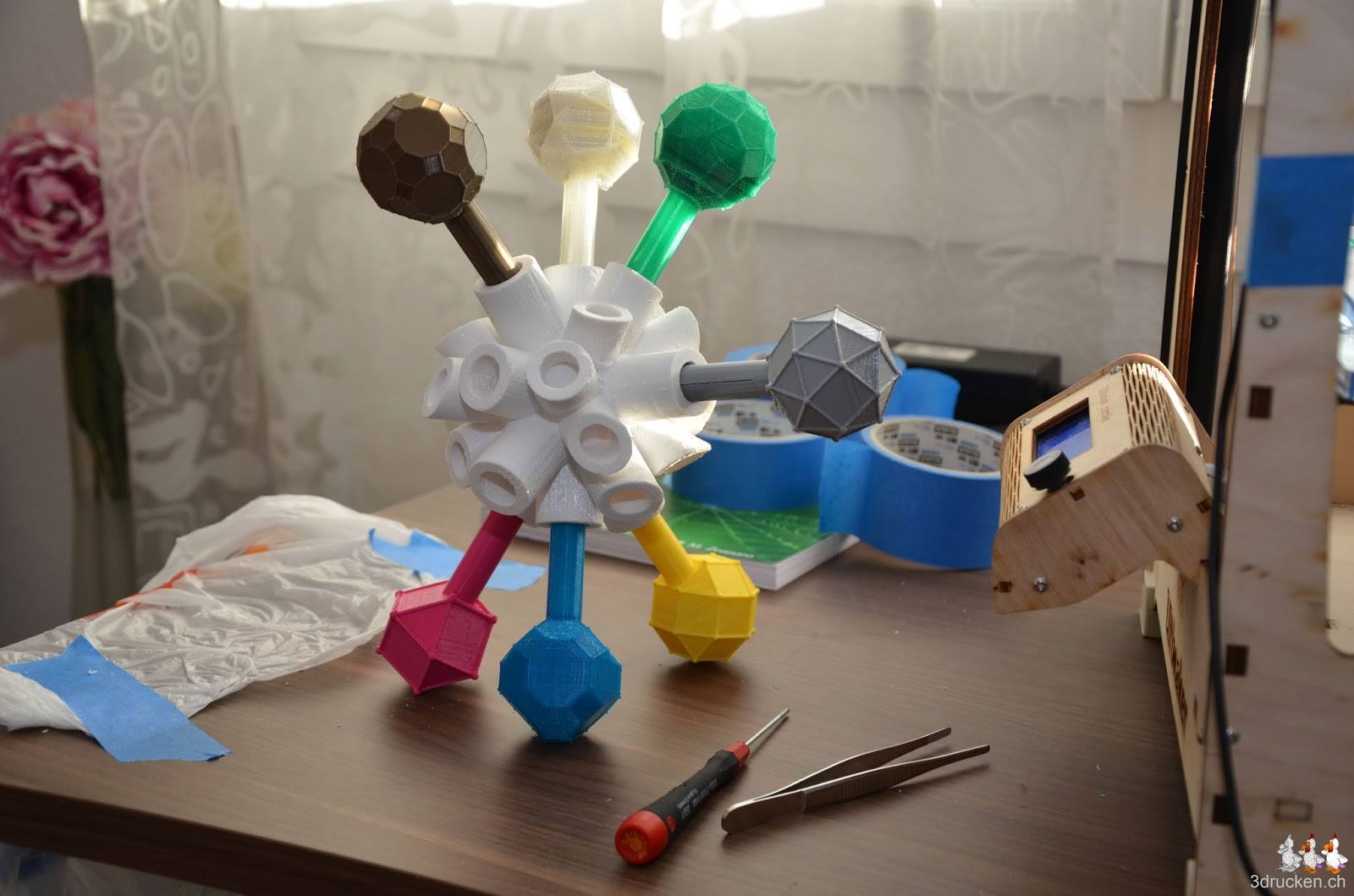 Die Oberfläche des abgeschrägten Hexaeder besteht aus 6 Quadraten und 32 gleichseitigen Dreiecken. Wir haben unseres in der Nacht auf heute gedruckt. The Gem wächst!