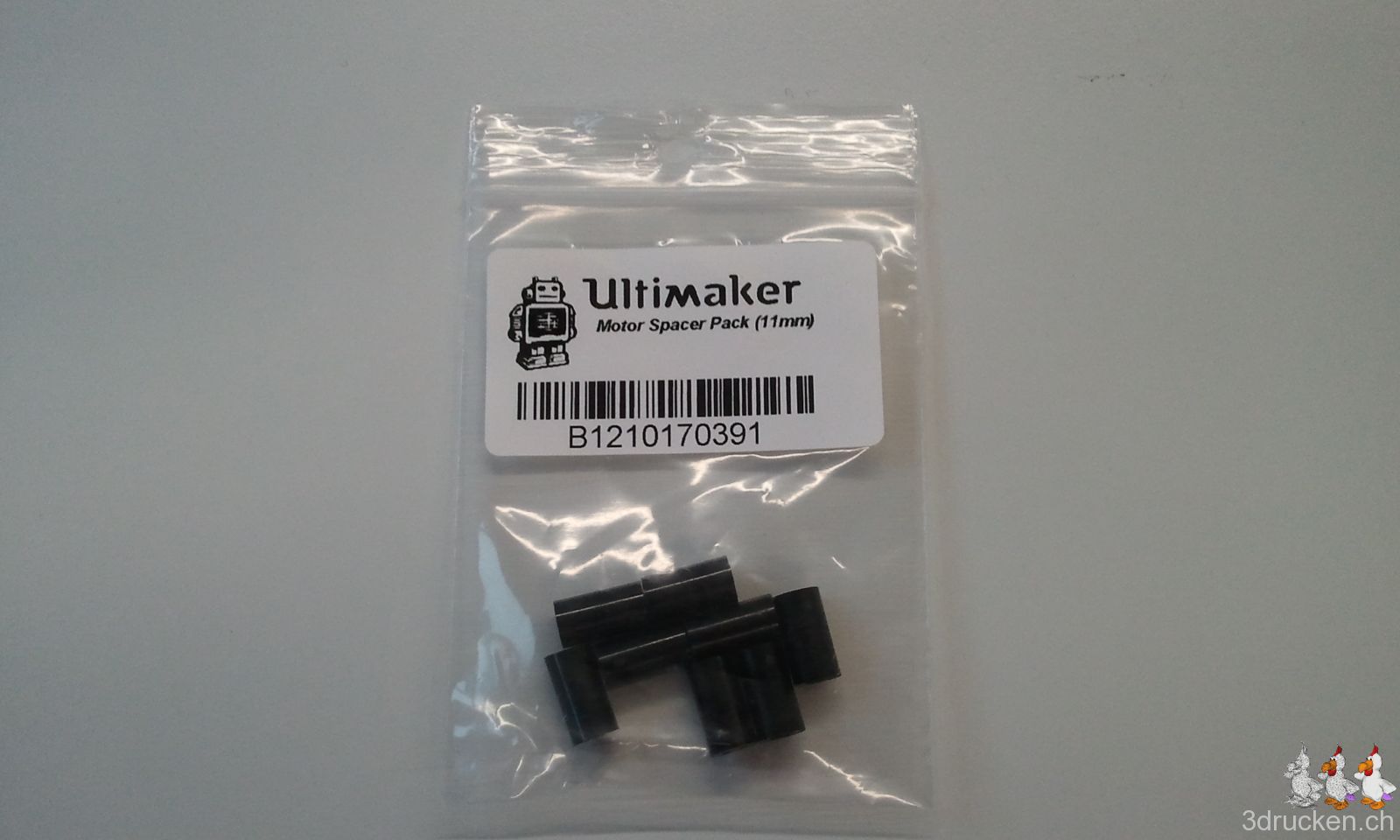 Eine erste Verwirrung, da auf den Fotos in der Anleitung noch die Spacer aus Holz drin sind, bei unserer Version der Auslieferung aber nur noch Plastik-Spacer mitgeliefert wurden, die mit „Motor Spacer Pack (11 mm)“ angeschrieben sind. Im Text der Anleitung steht dann schon, dass man nun die Plastik-Spacer anstelle der aus Holz verwenden soll, es ist aber mühsam immer erst alles anschauen und lesen zu müssen, damit man genau weiss, was man tun soll.