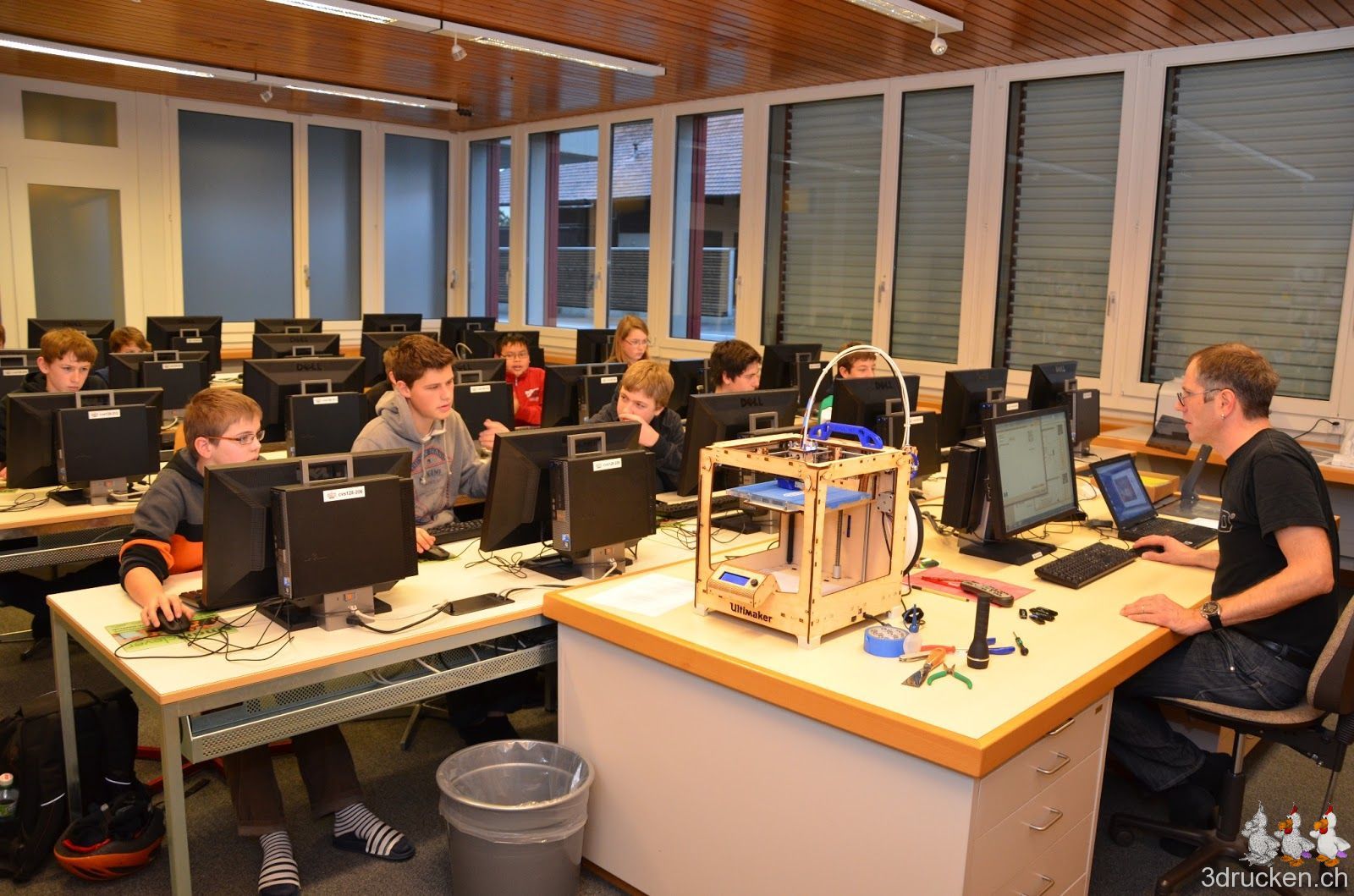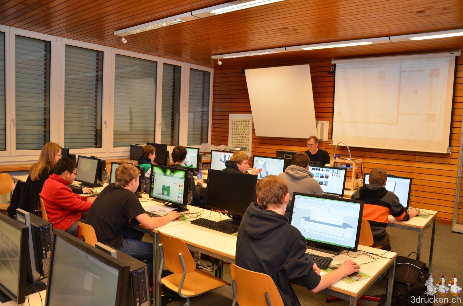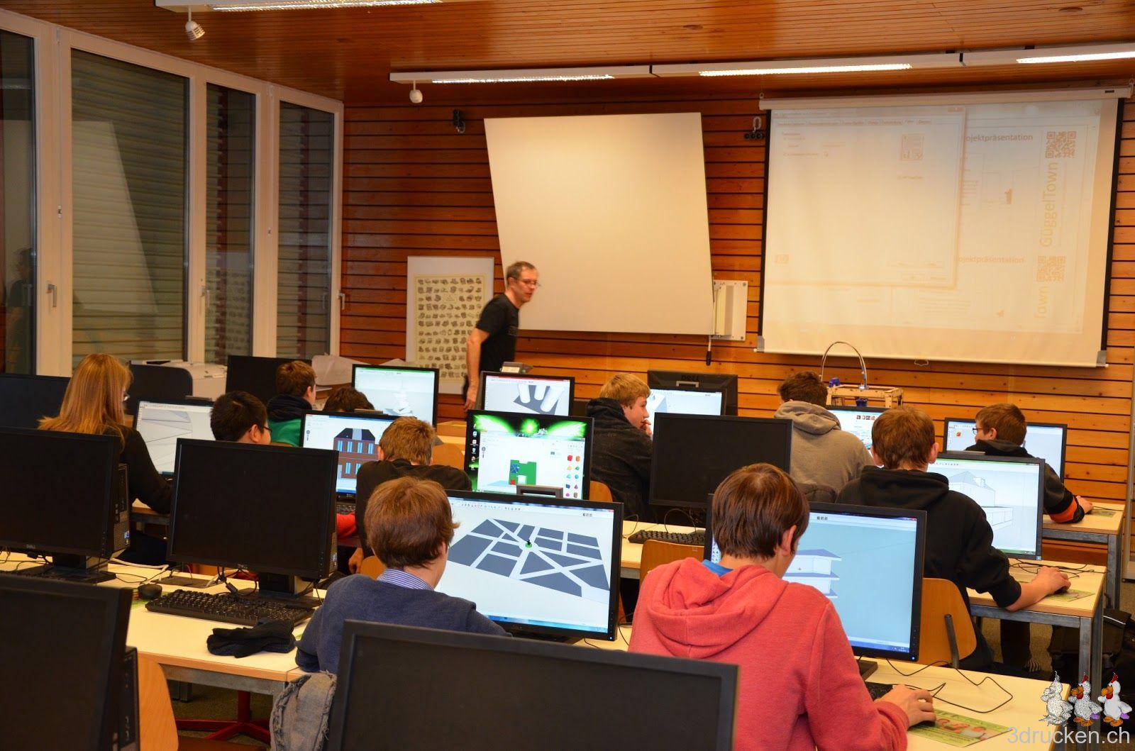 Die zwei Lektionen heute vergingen wie im Flug, und nun sind alle Gebäude zumindest mal exportiert, bzw. liegen als Sketchup-Zeichnungen vor, bis auf eines, da ein Schüler heute nicht da war im Unterricht. Wir sind gespannt welche Überraschungen wir beim Slicen erleben. Die Arbeit sollte uns besonders beim Drucken in den nächsten zwei Wochen bis zur Projektpräsentation nicht ausgehen. Hier ein paar Eindrücke von heute, welche den aktuellen Stand des Baufortschritts zeigen: