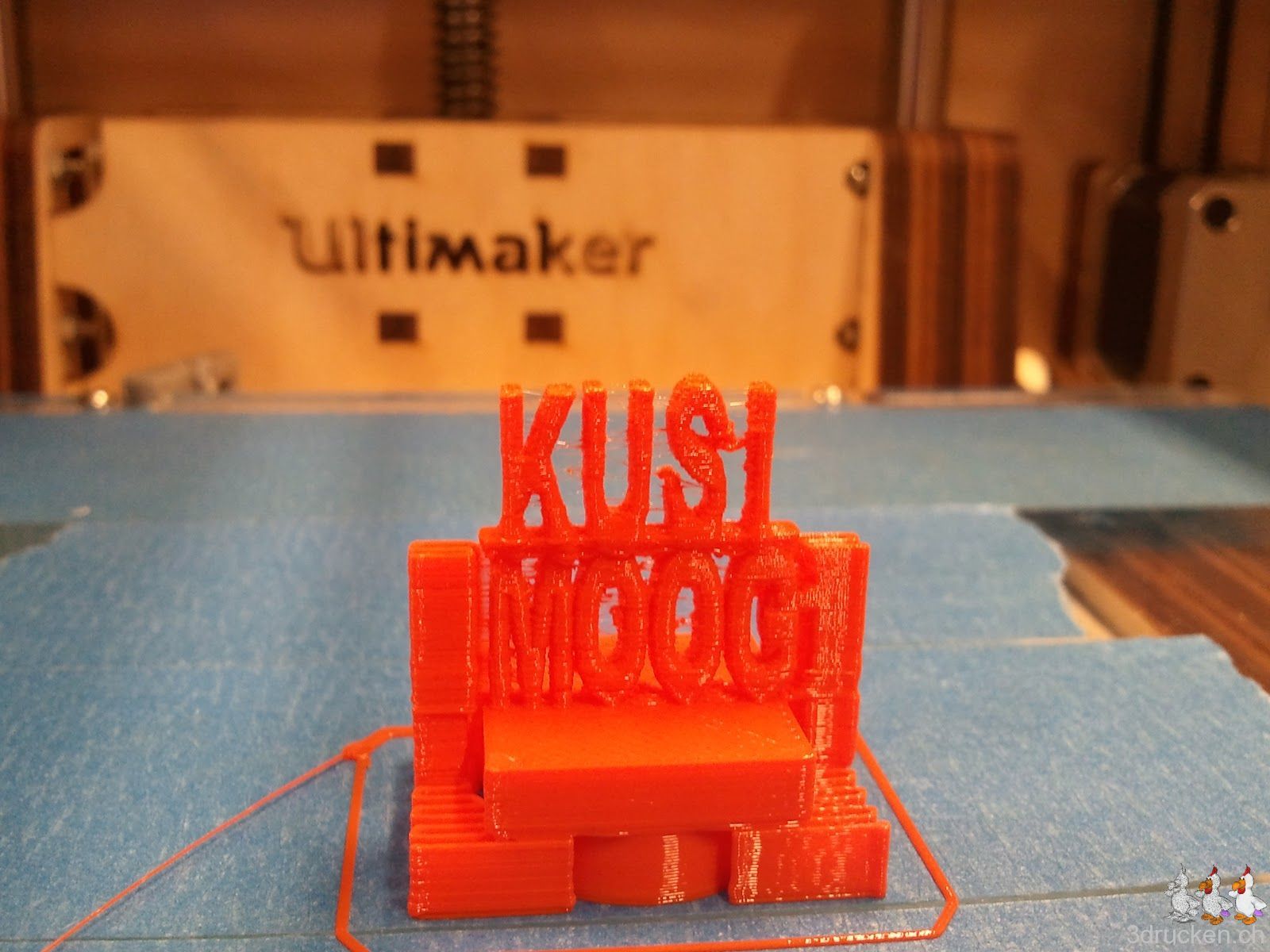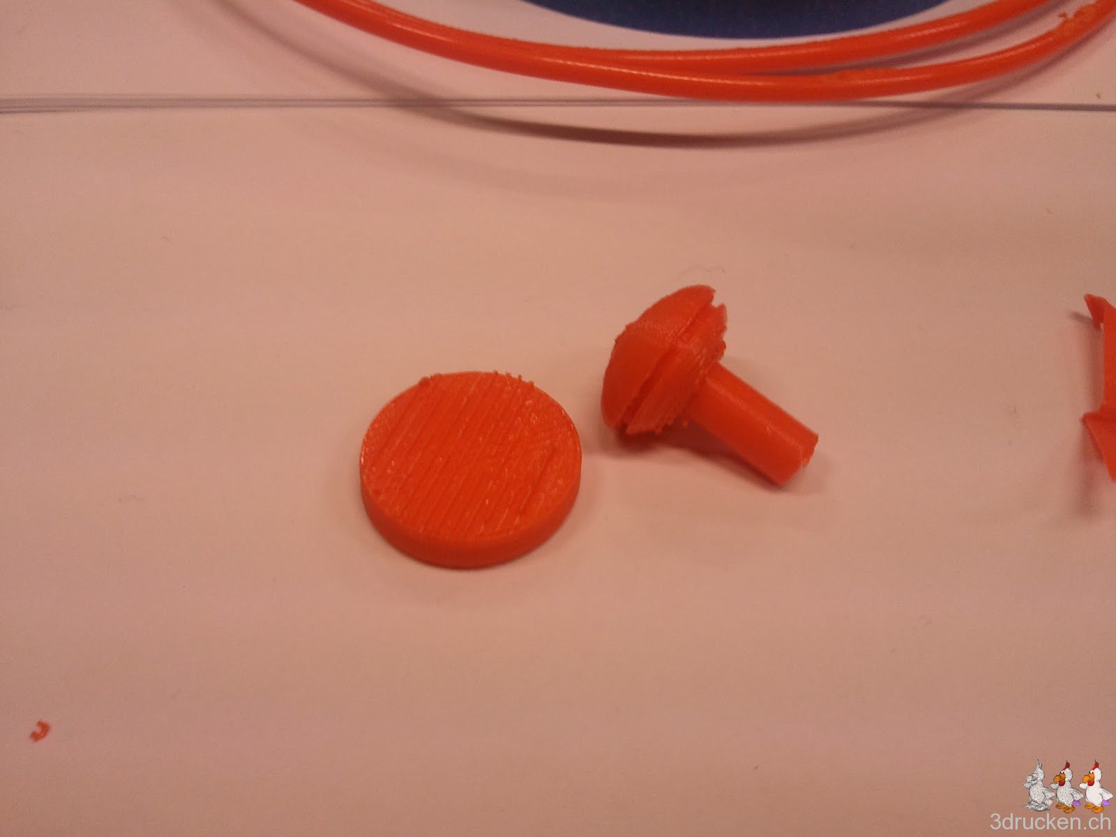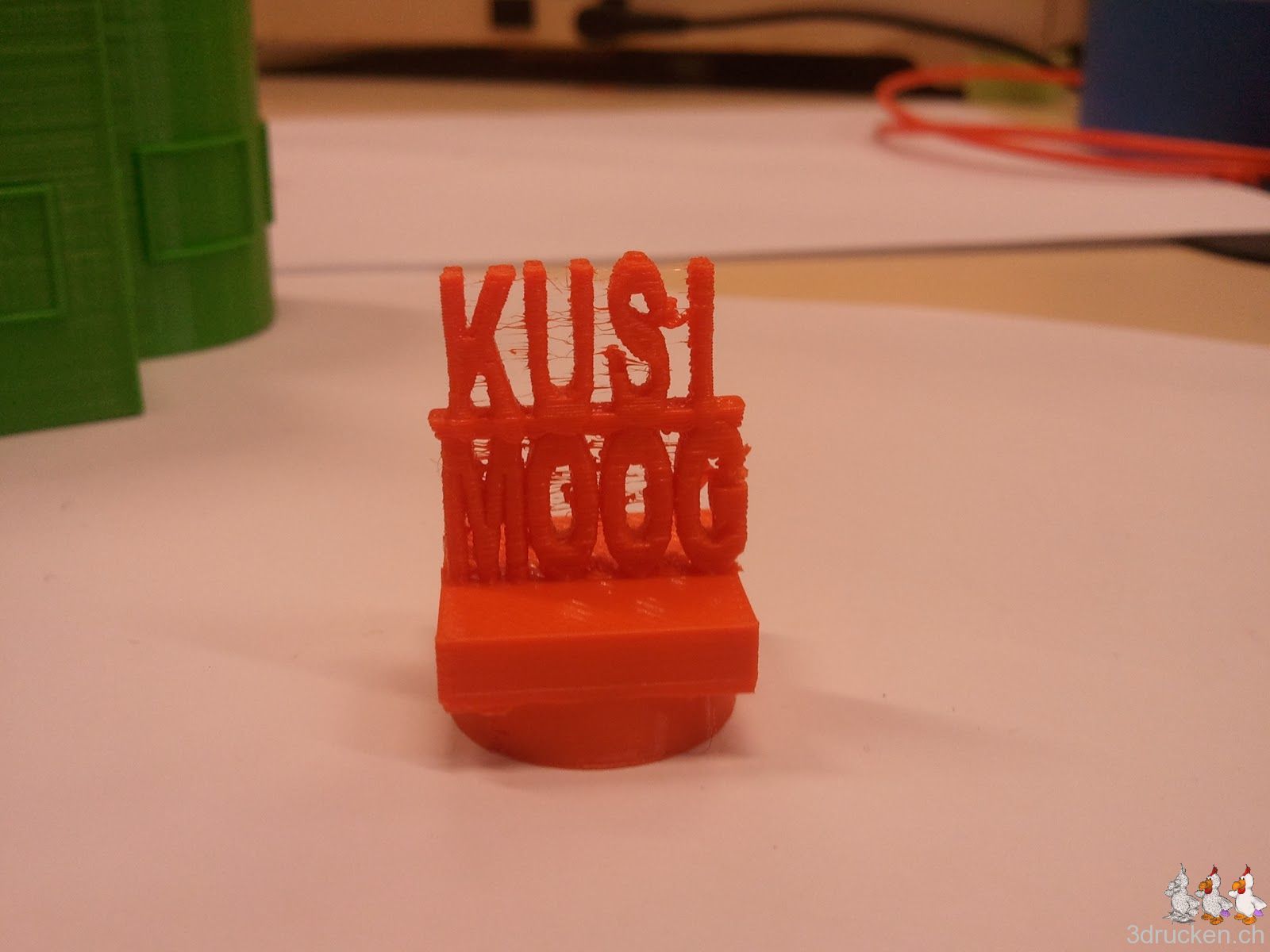 Heute war der Ultimaker zum zweiten Mal Gast im GTZ-Kurs in der Schule Steffisburg. Dabei ist Erstaunliches passiert. Es gelang nämlich ein von uns als praktisch unmöglich gehaltener Druck. Profis dürfte das nicht so sehr erstaunen wie es das uns BfB 3DTouch-geschädigte Anfänger tut. Der Versuch mit einer Drucktemperatur von 210°C war sehr ambitioniert, wir haben zum Schluss mit Cura bei 0.2 mm Schichten, inkl. Support bei 220° C und Rückzug gedruckt, das hat besser funktioniert. Die Grundfläche des Spielfigur-Sockels ist nur 20 mm im Durchmesser.