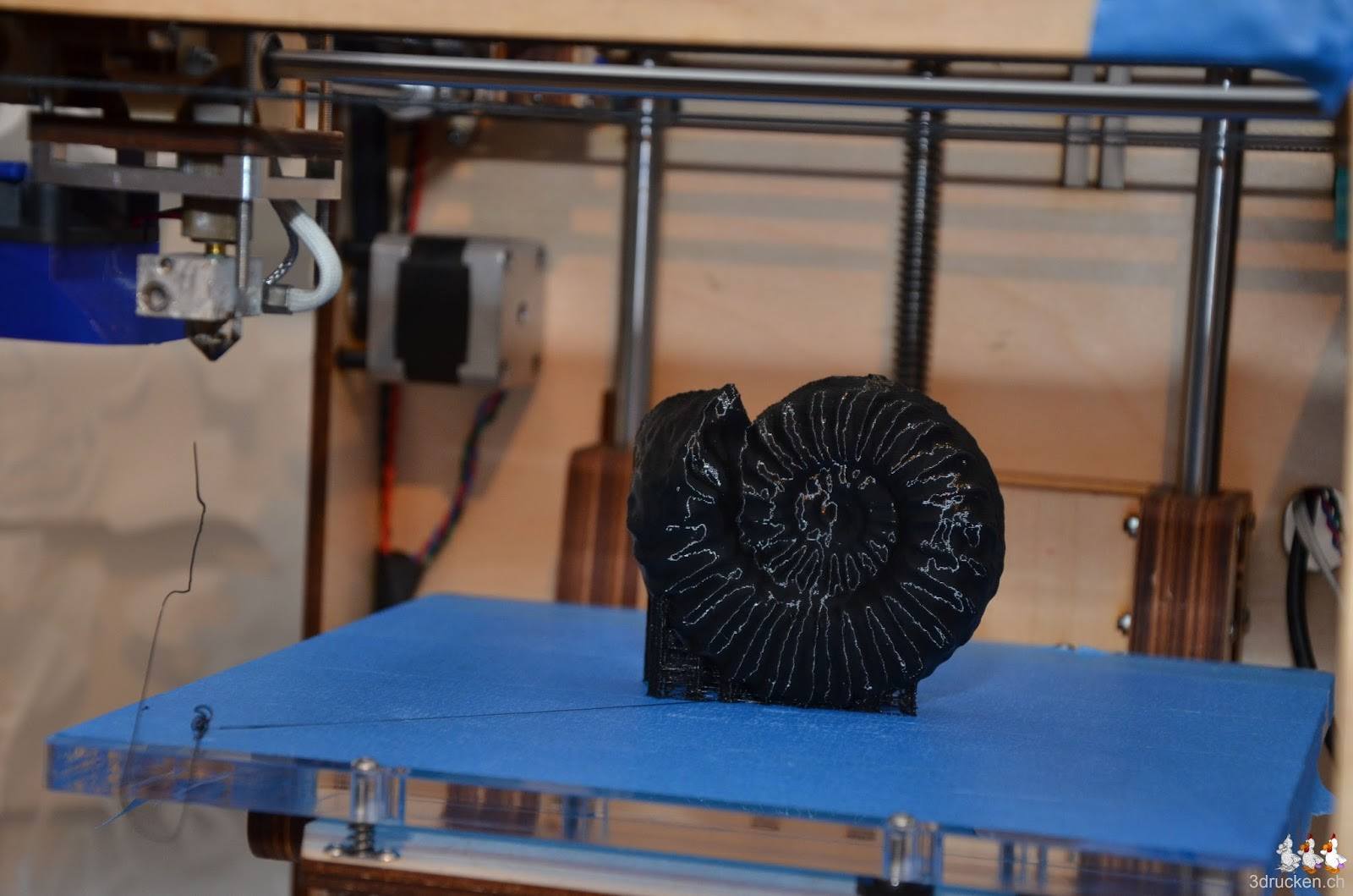 Für einen Ammoniten ist er erstaunlich leicht, der gescannte Ammonit aus dem Museum Victoria, welchen wir auf 200% skaliert aus schwarzem Faberdashery PLA in 1h 22min mit 0.24mm Schichtdicke gedruckt haben.
