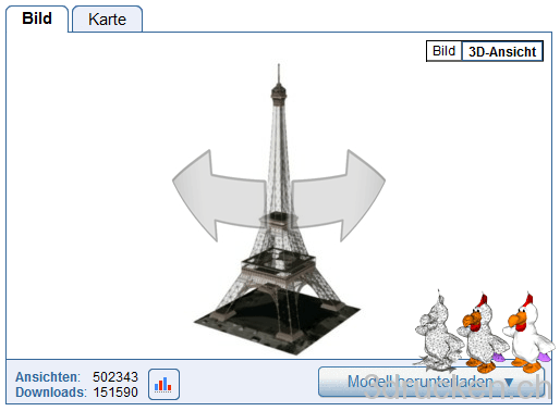 Das probiere ich doch gleich einmal am Beispiel des komplexen Modells des Eiffelturms aus Googles 3D-Galerie aus. Na da bin ich ja mal gespannt ...