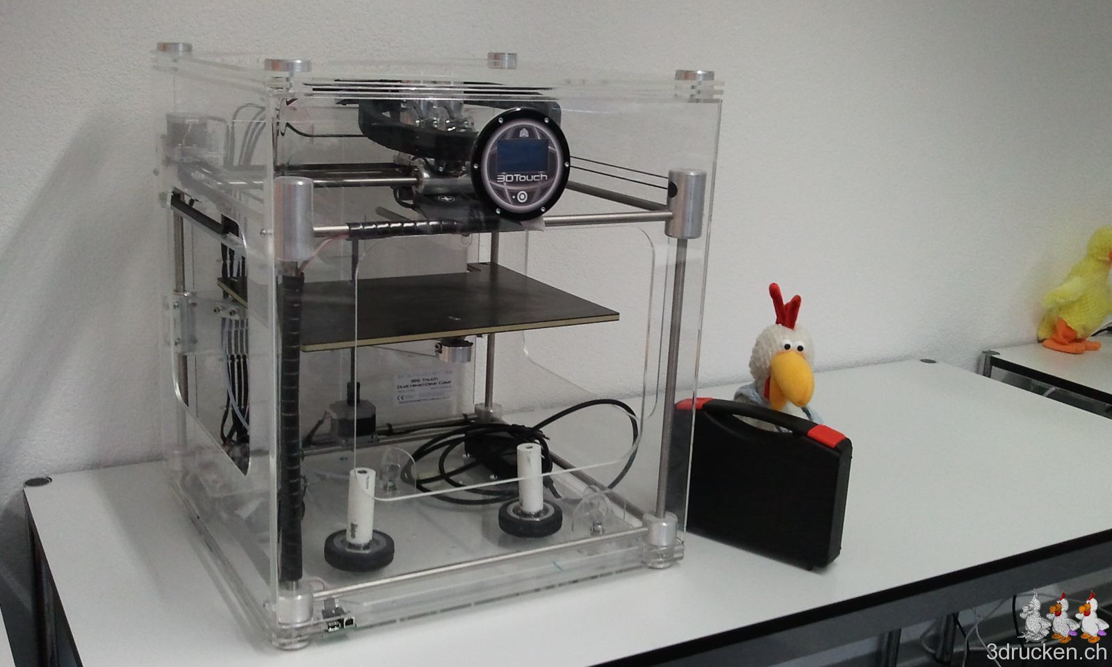 Der Güggel hat den Werkzeugkoffer bereits gepackt, denn wir verkaufen unseren voll funktionstüchtigen BfB 3DTouch aufgrund des Wechsels zu Ultimaker.