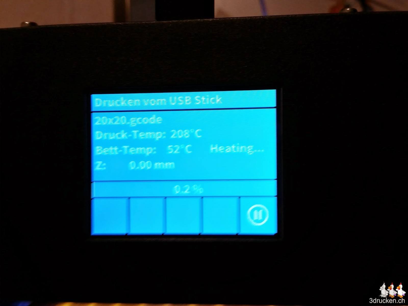 So, nun kommen wir zum Spannenden Teil, druckt das Ding überhaupt? Die Antwort ist Ja! Und dies erst noch praktisch direkt ab USB-Stick, den man oberhalb des Touchscreens einstecken kann.