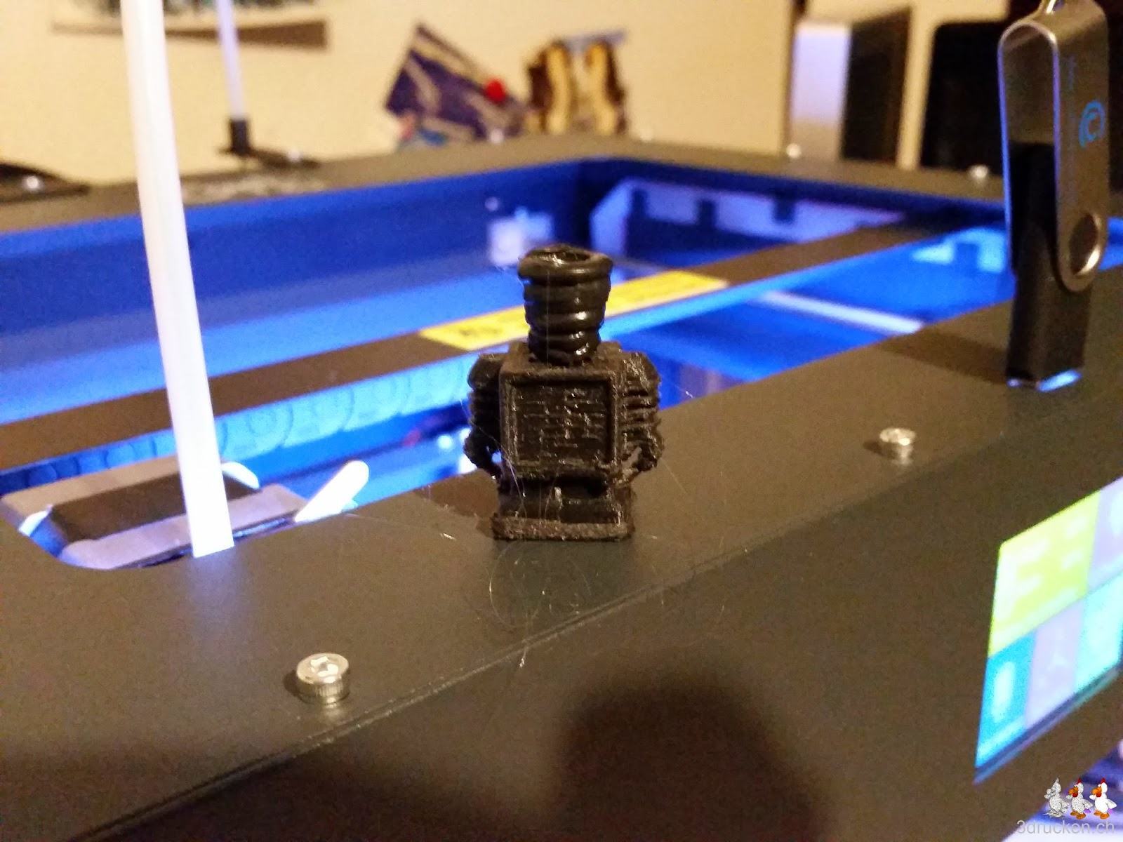 Der CraftBot ist ein sehr interessanter Drucker und liefert für den Preis schon sehr ansehnliche Objekte. Einzig die Firmware ist noch nicht ganz fertig entwickelt und in einer Art Beta. Das macht sich dadurch bemerkbar, dass noch nicht alle Menüpunkte in den Einstellungen funktionieren und dass die Beschleunigung noch nicht ganz passt. Je nach Objekt kann es daher zu Verschiebungen der Layer kommen, da der Schrittmotor Schritte verliert.