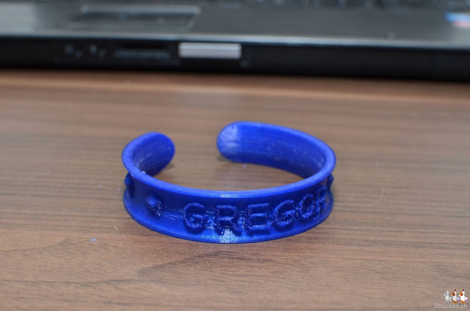 Die Plattform Cubify bietet eine inzwischen beachtliche Zahl von Onlinetools, mit denen sich Dinge wie z.B. Schmuck in Form eines personalisierten Armbandes drucken lassen. Wir haben das nun mal ausprobiert. Neben den Armbändern bietet der Bereich Schmuck auch noch Ringe, Ohrringe und Schildchen. Es ist zwar einfach damit ein Armband an seine persönlichen Bedürfnisse anzupassen, nur leider ist die Platzierung und insbesondere die Grösse mit S-M-L relativ vage. Wir versuchens mal mit der Grösse M und stellen am fertigen Druck fest, dass die Cubify-Plattform wohl zu einem grossen Teil auf Kinder ausgerichtet ist