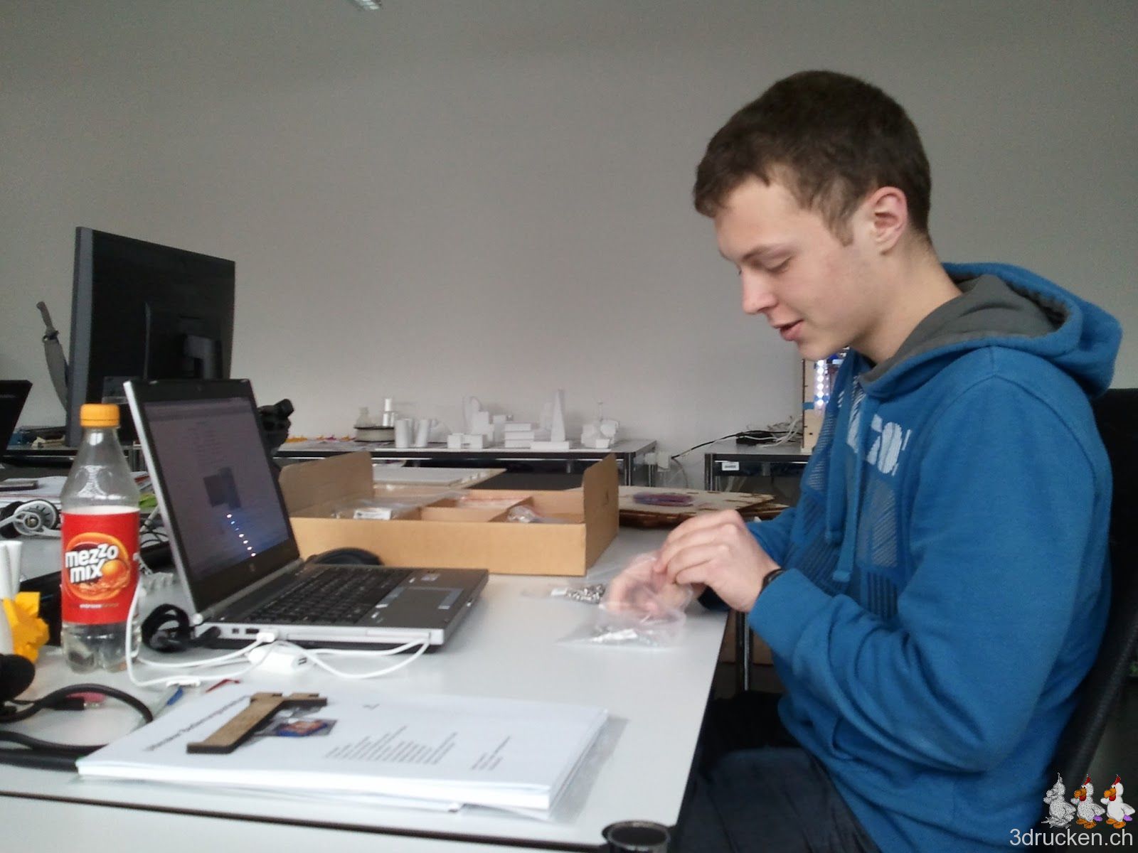 Fabian baut seit heute unseren dritten Ultimaker zusammen. Wir wünschen viel Freude dabei, und freuen uns Montag wieder dabei zuschauen zu können.