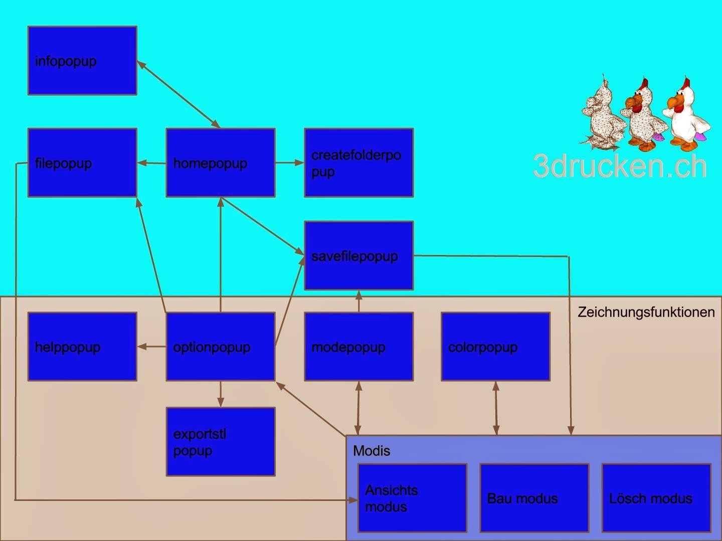 Viel verändert hat sich von aussen leider nicht. Von innen dafür um so mehr. Wir haben begonnen mit PHP unseren Code ein bisschen zu organisieren. Weiter haben wir eine Funktion geschrieben womit wir die MySQL-Datenbank ansprechen können. Diese benutzen wir bereits um erfolgreich die gezeichneten Objekte in der MySQL-Datenbank ab zu speichern.