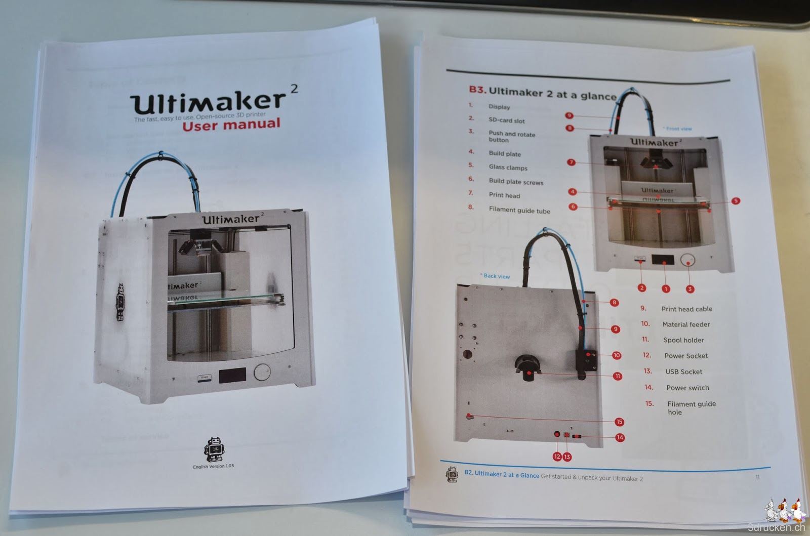 Gestern ausgepackt, heute die Bedienungsanleitung gelesen und danach gleich ausprobiert. Soweit unsere Vorstellung, doch bald bemerken wir, dass wir es mit einem komplett neuen 3D-Drucker zu tun haben, auch wenn wir bisher schon mit einem Gerät von Ultimaker gearbeitet haben.
