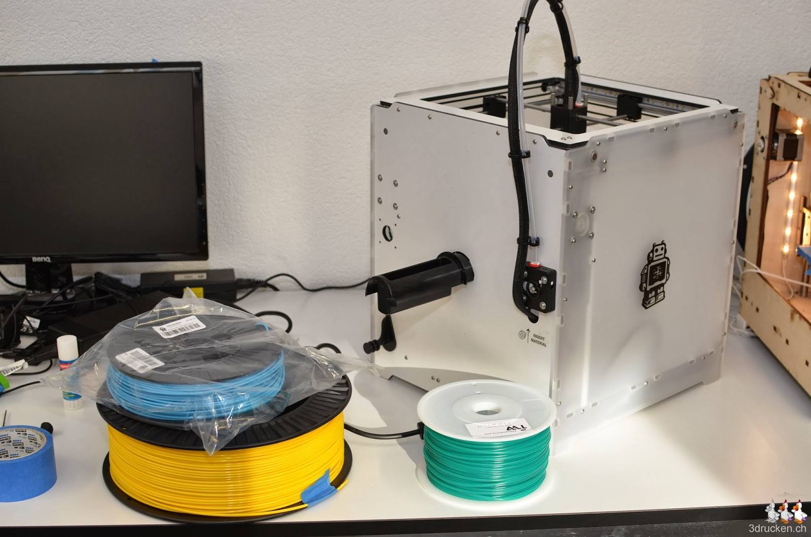 Was uns beim Hantieren mit den Rollen auffällt: der neue Ultimaker kippt gerne nach hinten, wenn man zuviel Gewicht oder Druck ausübt.