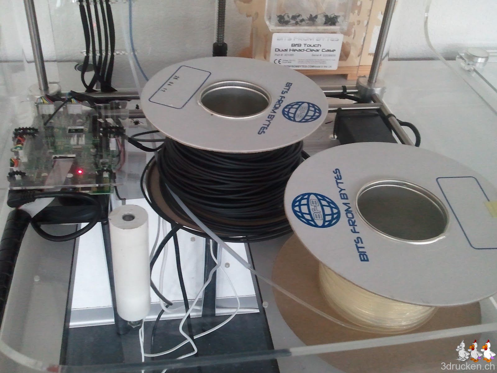 Heute morgen ist bereits die Sendung mit dem blauen PLA von fabberworld.com aus St.Gallen eingetroffen. Da die Rolle wie erwartet etwas anders aussieht, stellt unser Daniel Düsentrieb Hauswart Georges gerade eine etwas modifizierte dritte Rollenhalterung her, damit wir diese Rollen einfach dort reinlegen können. Hier schon mal vorab einige Bilder von der Aktion.