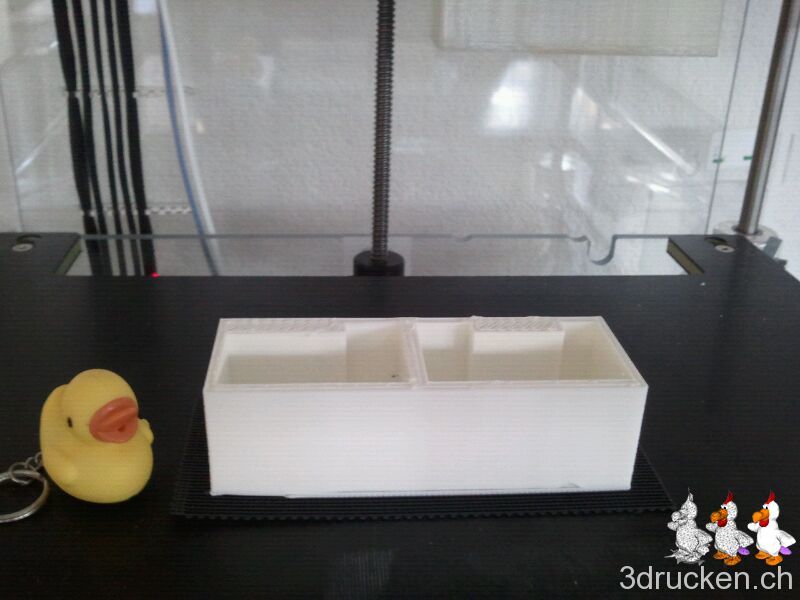 Gedruckt haben wir mit 220° C, 25 % Füllung, 0.5 mm Schichten und 25 % Qualitätseinstellung in KISSlicer, ohne Raft diesmal. Druckzeit 6 h 42 min.