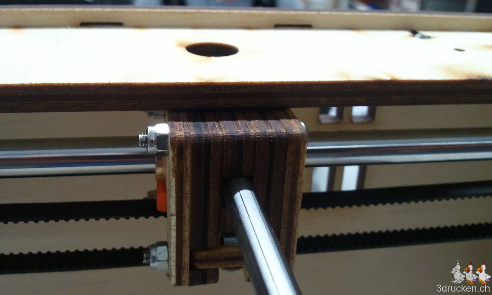 In der Anleitung stehen 60-90min für diesen Schritt, wir haben mit dieser Dokumentation ziemlich genau 180min benötigt. Was uns aufgefallen ist, dass das Holz unserer Decke (Top) sich sehr stark verzogen hat. Es hängt nun hinten fast auf dem Schliessblock. Hoffentlich lässt sich das durch das einsetzen der Z-Achse im nächsten Schritt etwas korrigieren.