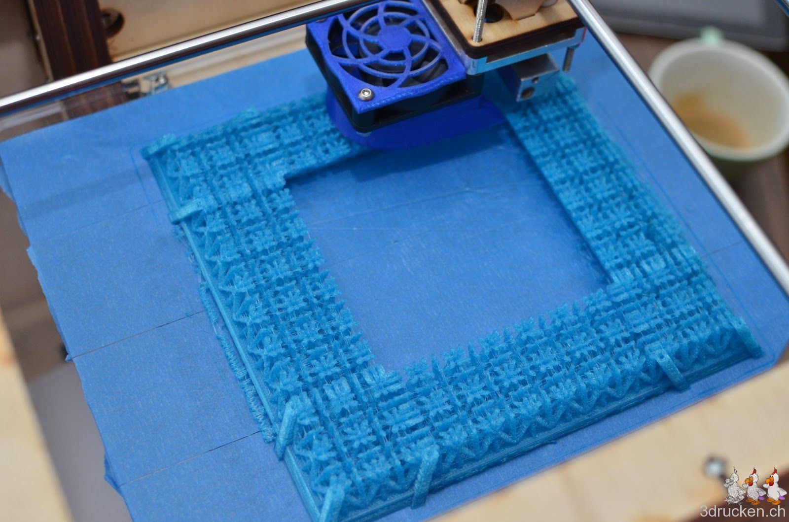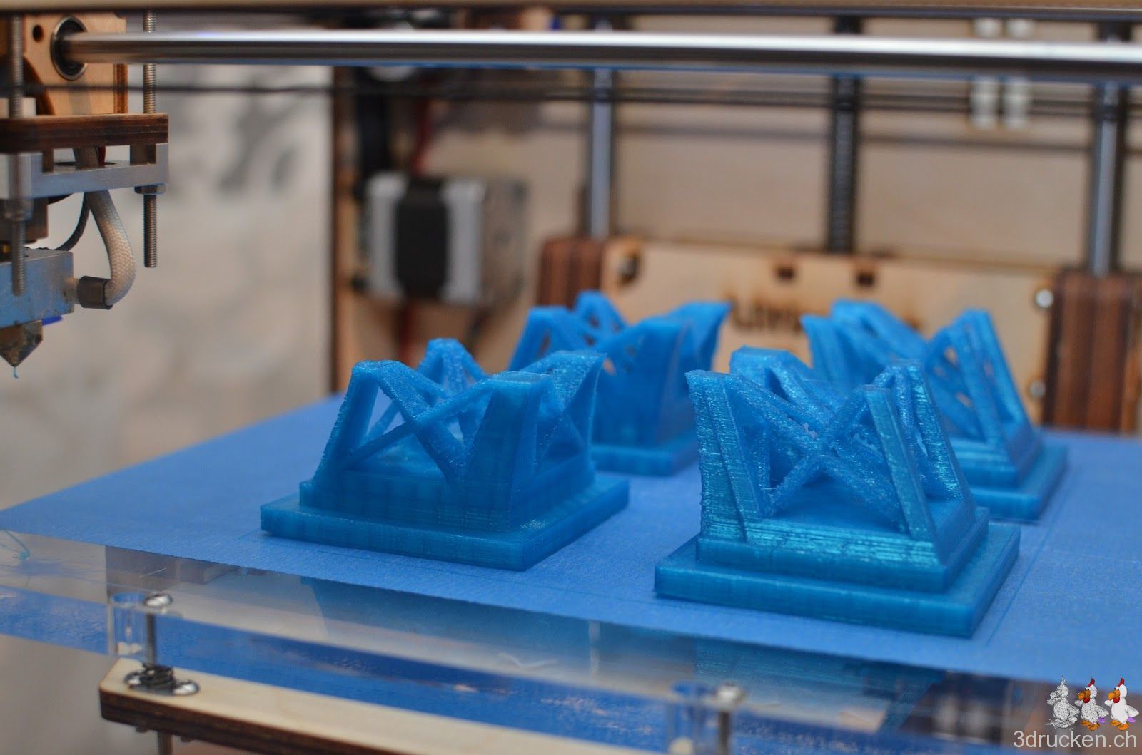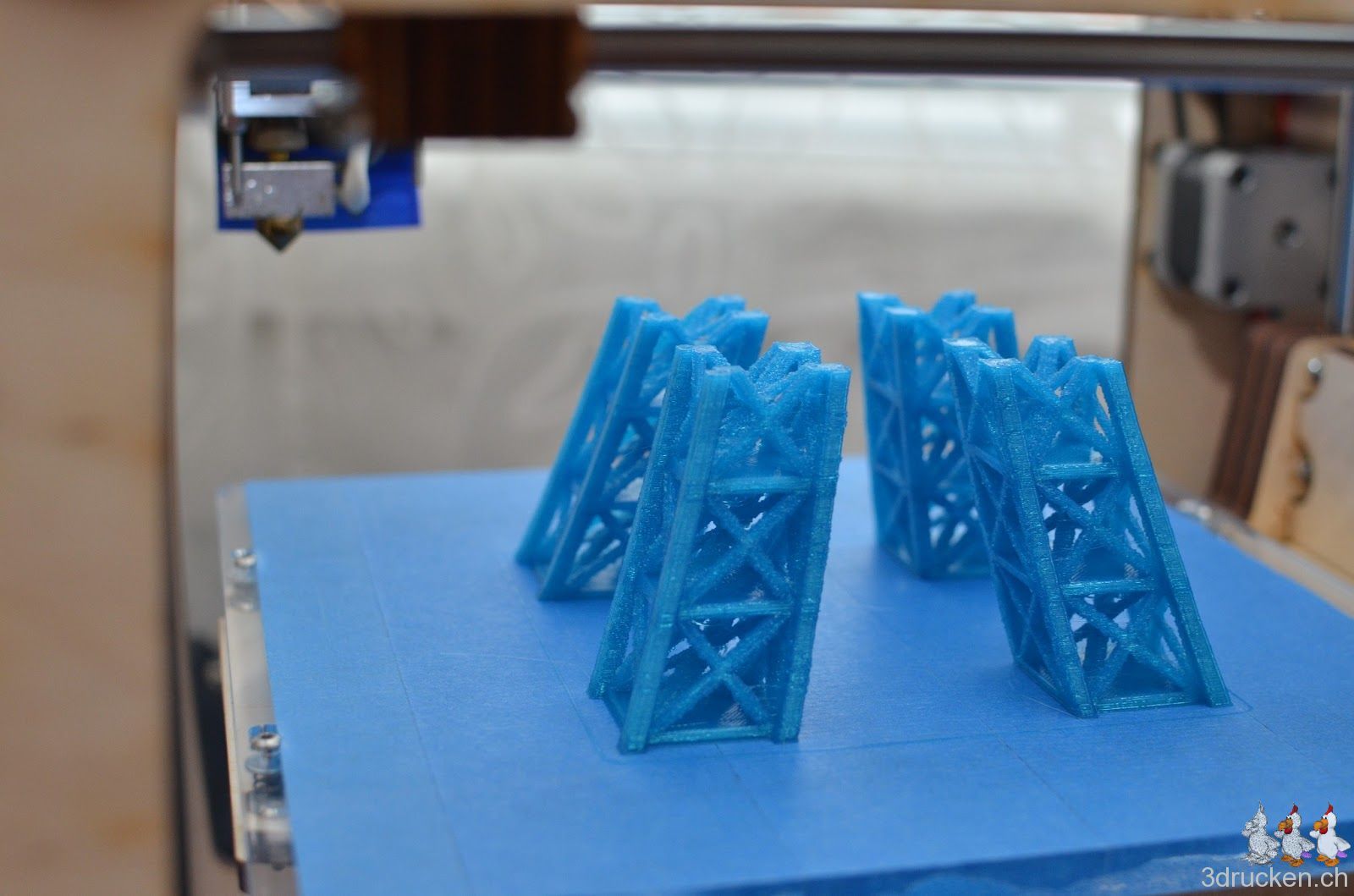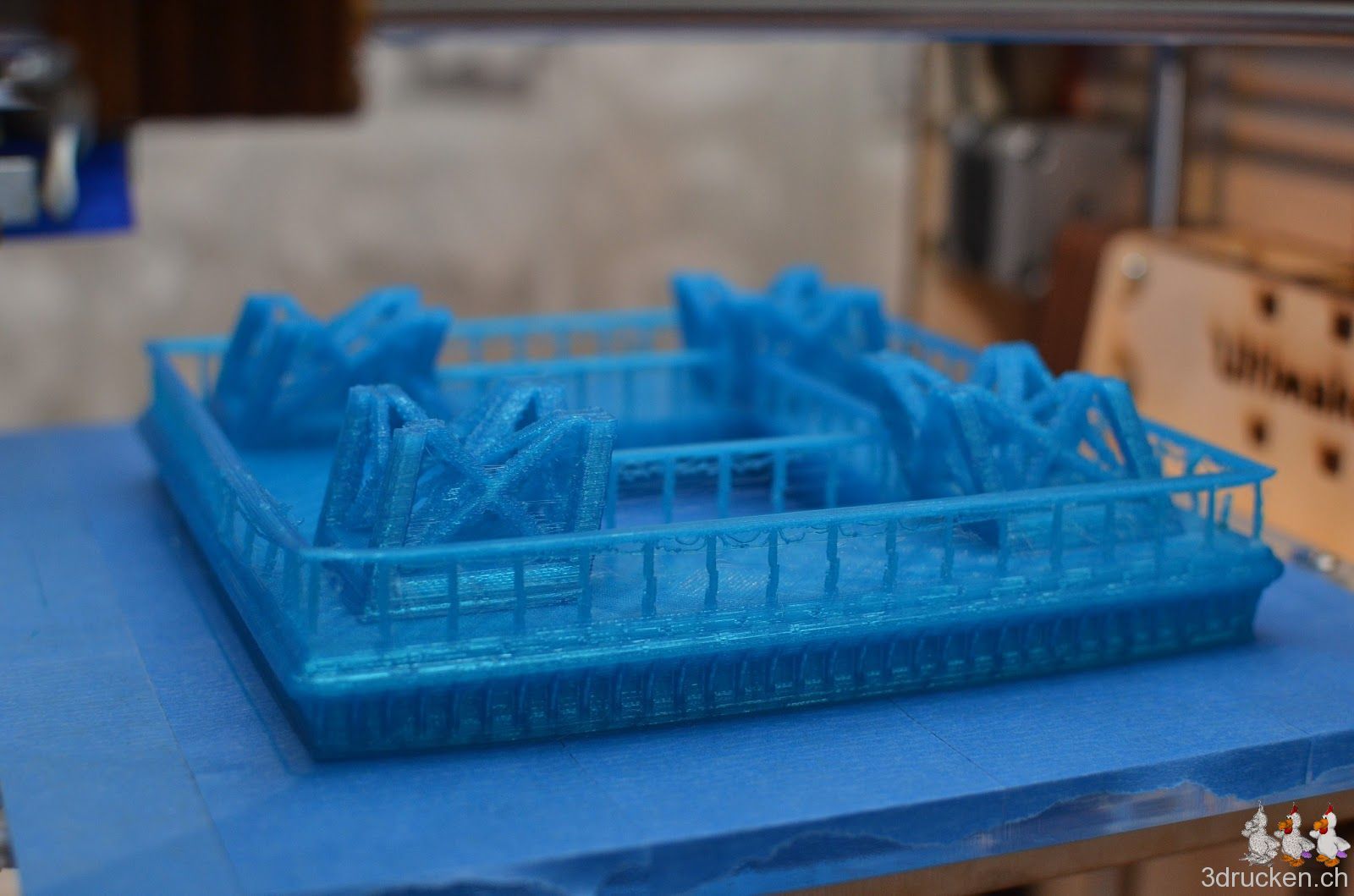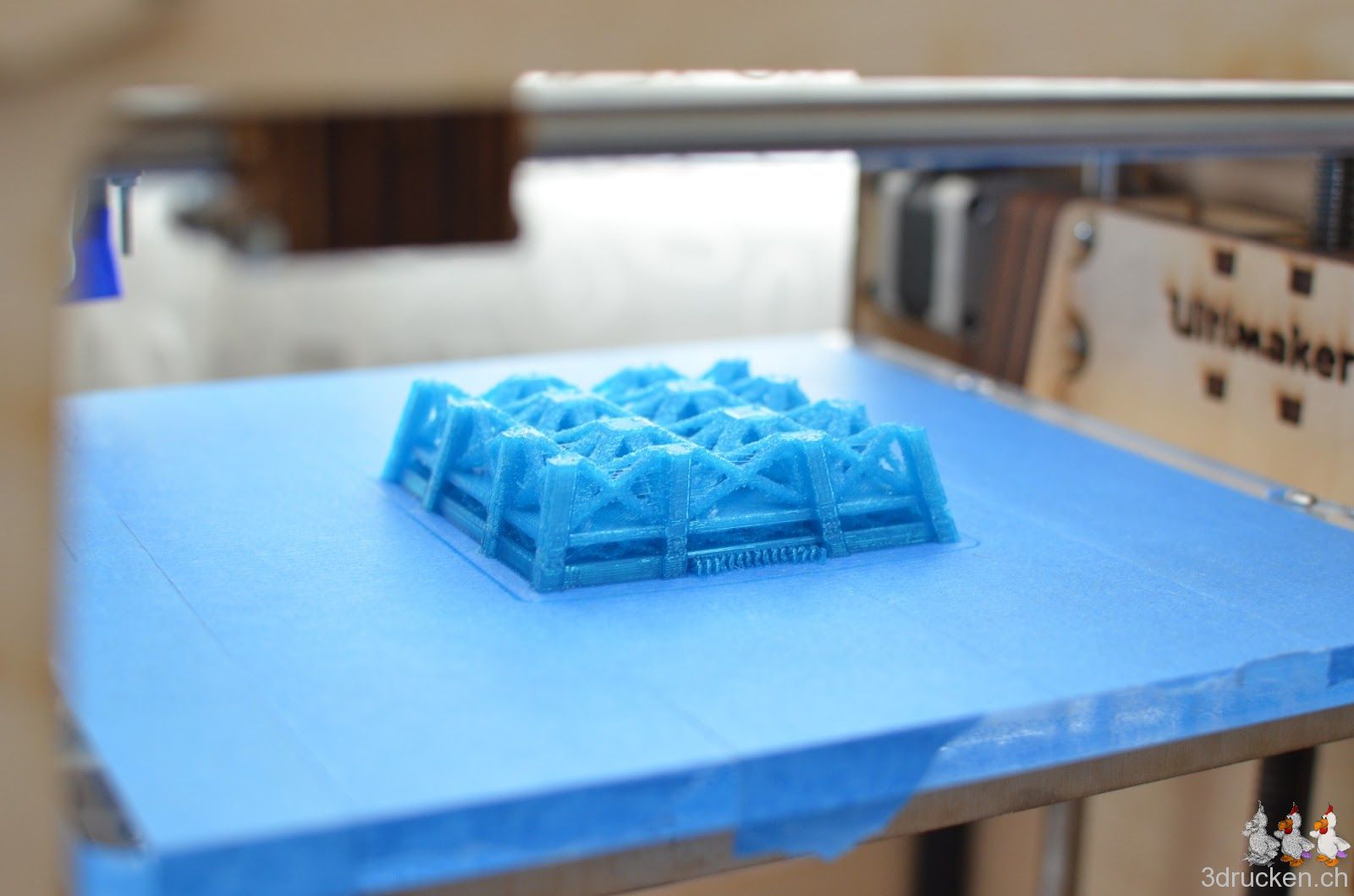 Wir wollten ausprobieren, wie gross und trotzdem detailreich man mit dem Ultimaker drucken kann. Herausgekommen ist ein mit Netfabb Studio in 20 Einzelteile zerlegter Eiffelturm mit 60 cm Höhe. Grösser als der Güggel.
