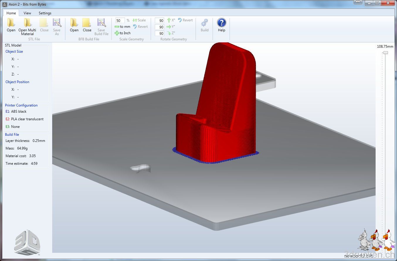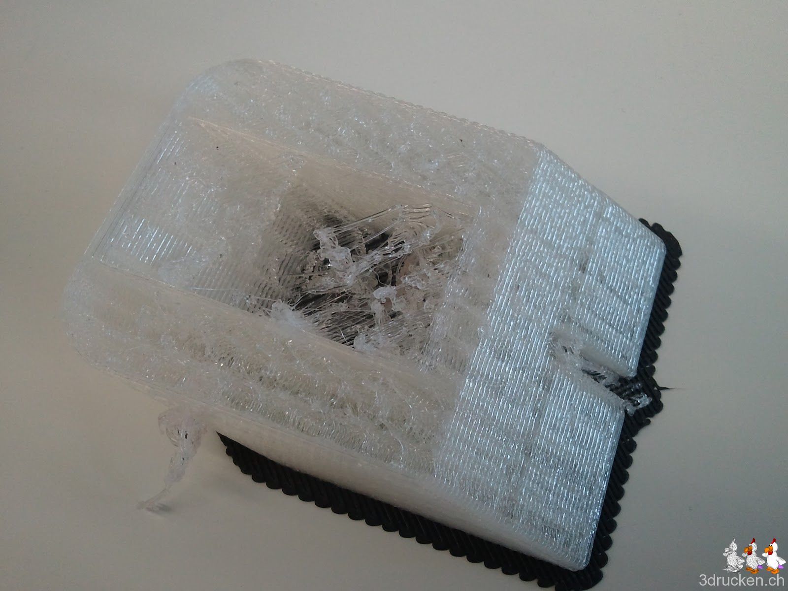 Aus einem mit KISSlicer geslicten Modell mit höchster Geschwindigkeit hat unser Drucker ein richtig schön schiefes IDock erstellt. http://www.thingiverse.com/thing:14633
