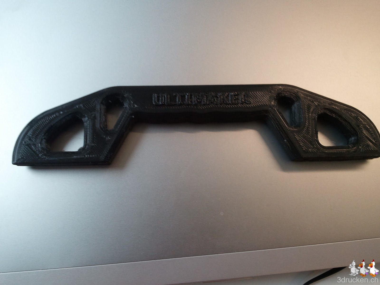 Der BfB 3DTouch zeigt sich sozial, und druckt einen Tragegriff für den Ultimaker. Bei solch grossen Sachen macht sich der 3DTouch gar nicht schlecht! Fehlt nur noch die Montage, die wird erledigt, wenn der aktuelle Druckjob auf dem Ultimaker beendet ist.
