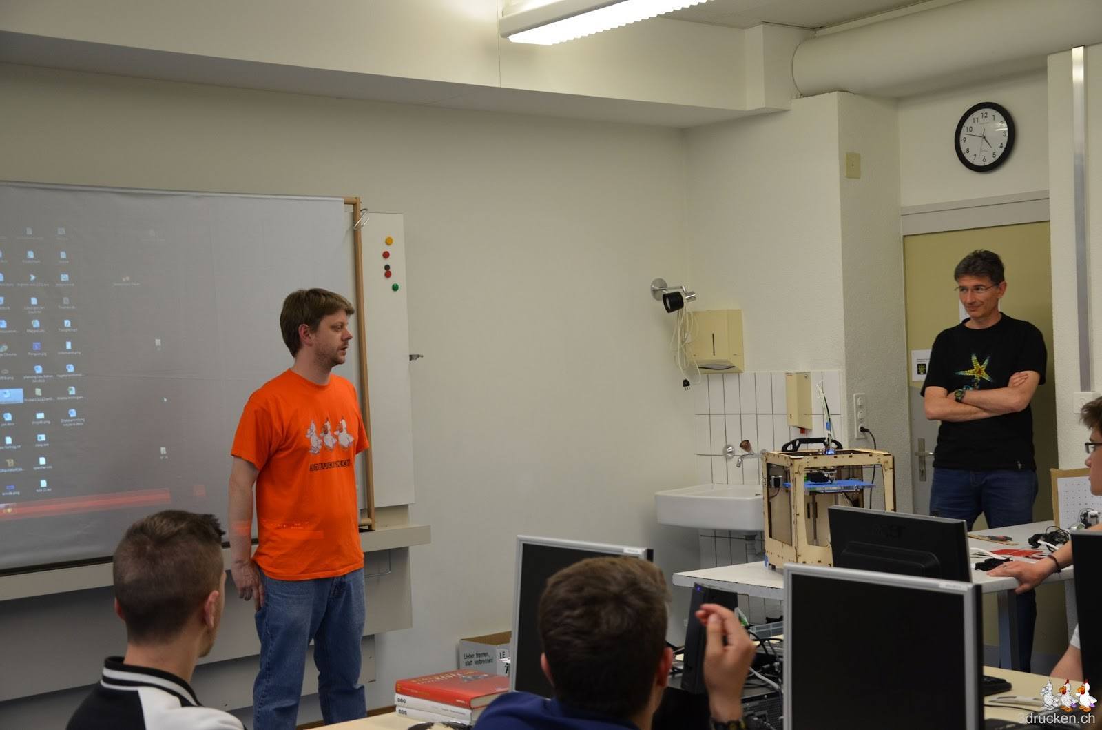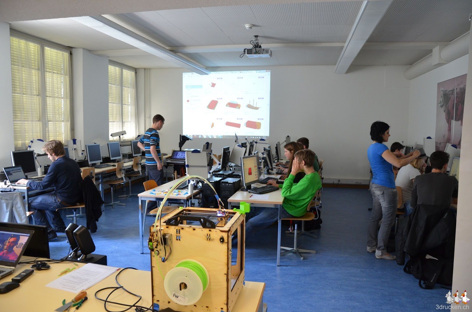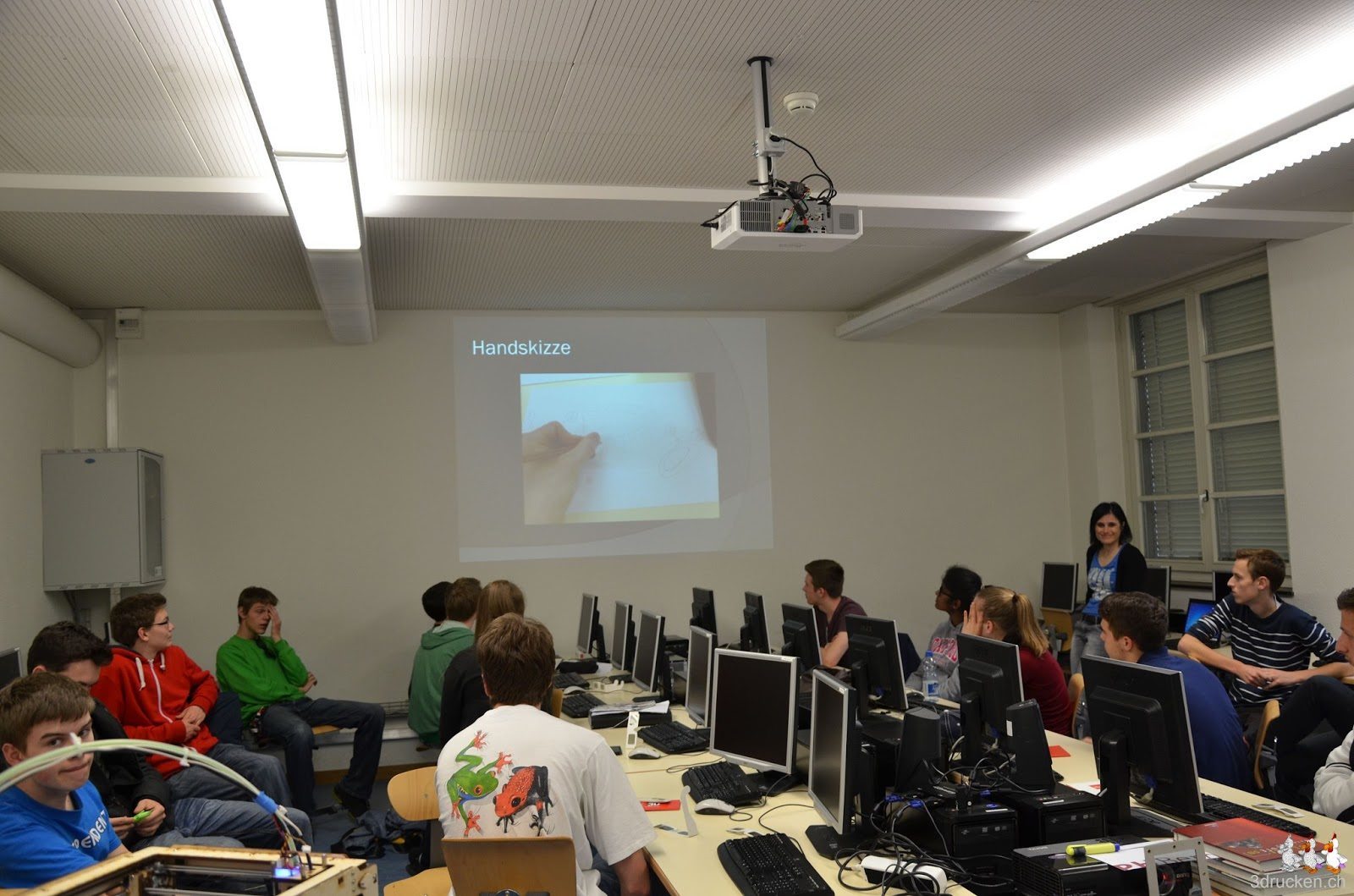 Unser Einsatz gestern am EF-Tag Informatik am Gymnasium Kirchenfeld bei Martin Lehmann und Sebastian Forster war ein voller Erfolg. Wir haben mit einer Gruppe von 8 Leuten den Workflow von der Idee bis zum fertig gedruckten Objekt durchgespielt. Die Schülerinnen und Schüler zeichneten Fortbewegungsmittel und eines davon haben wir dann auf dem Ultimaker ausgedruckt. Zum Abschluss fand eine Präsentation mit allen Schülerinnen und Schülern statt, dafür wurde auch das kurze Video erstellt.