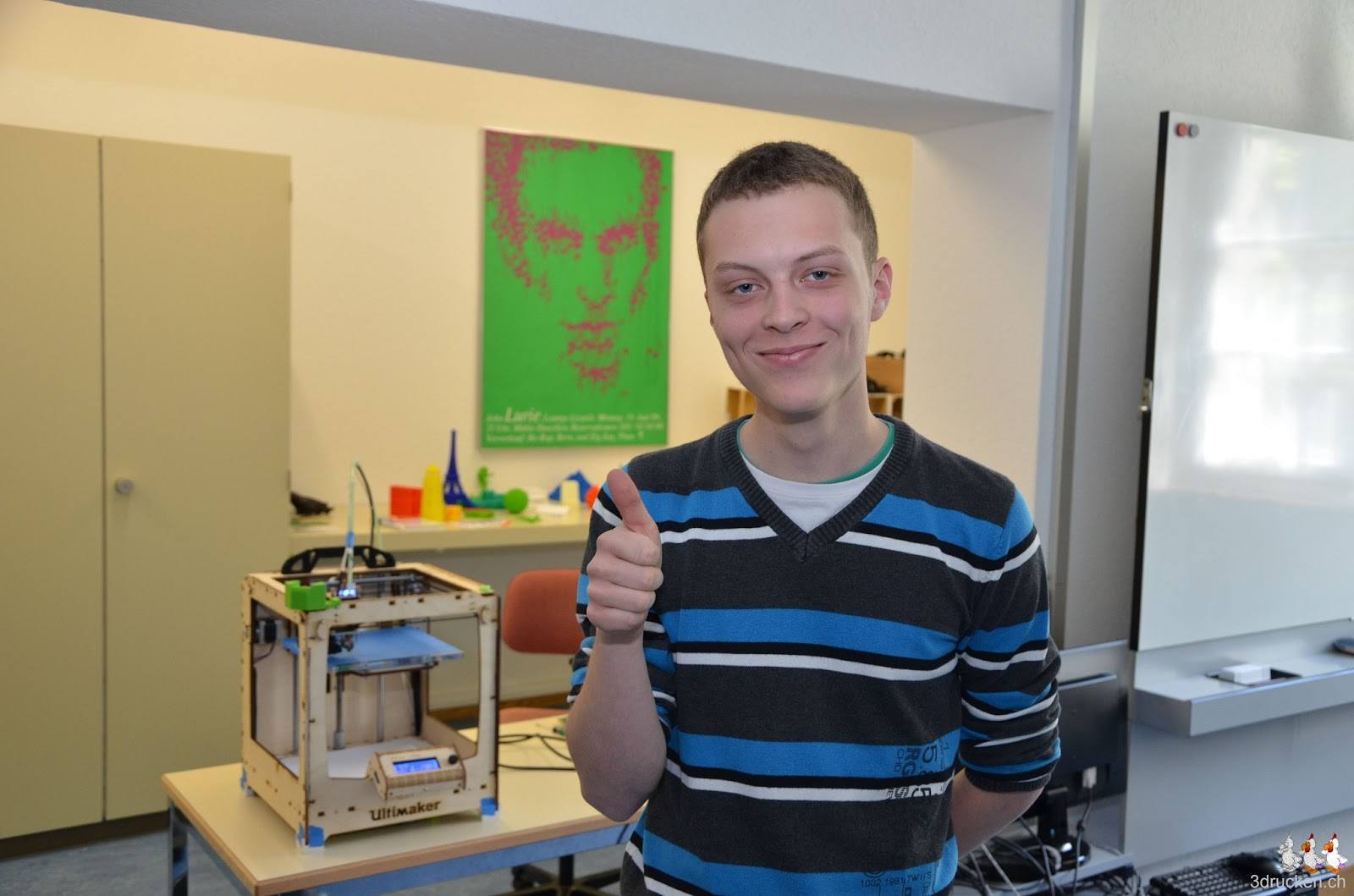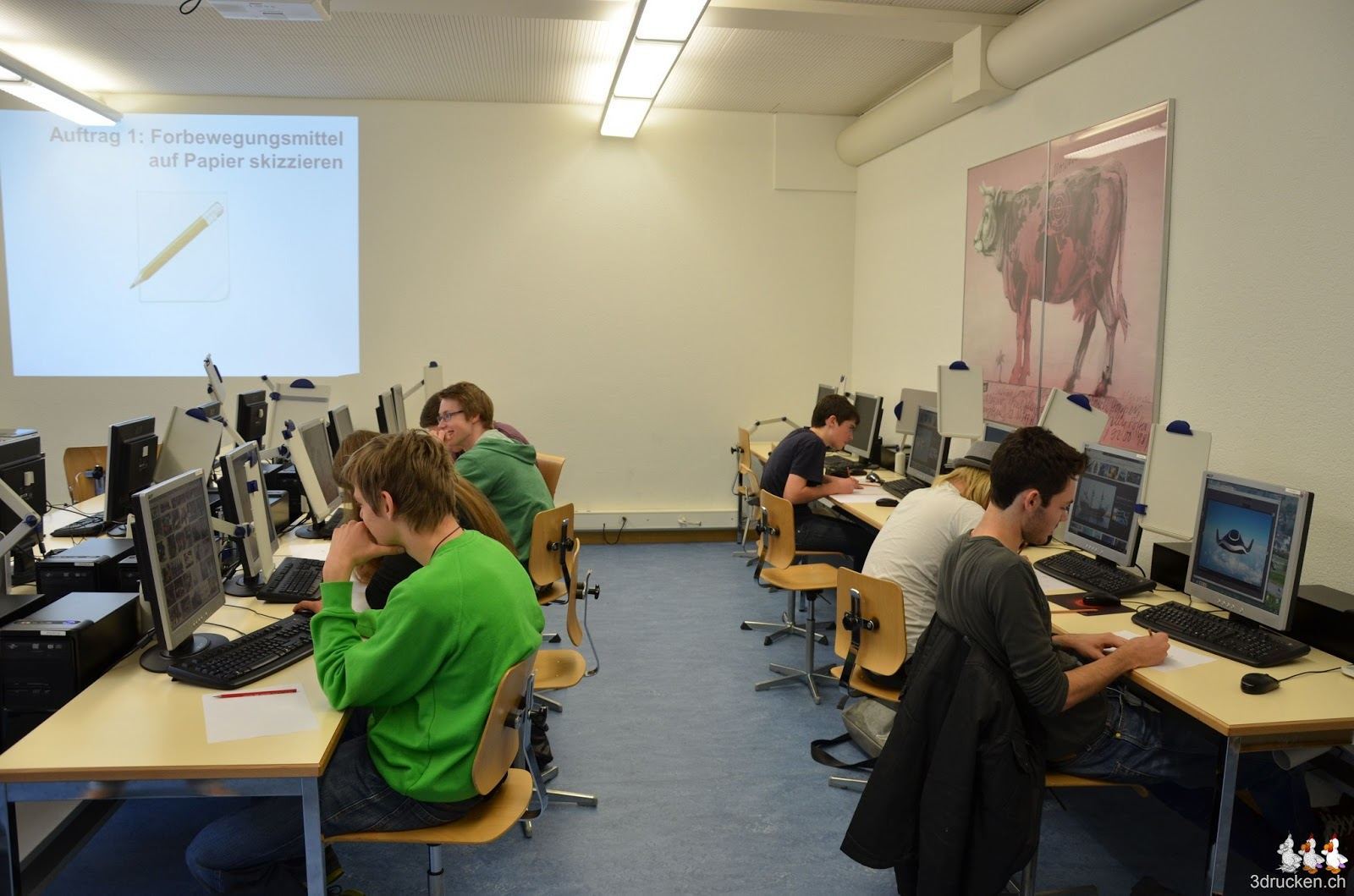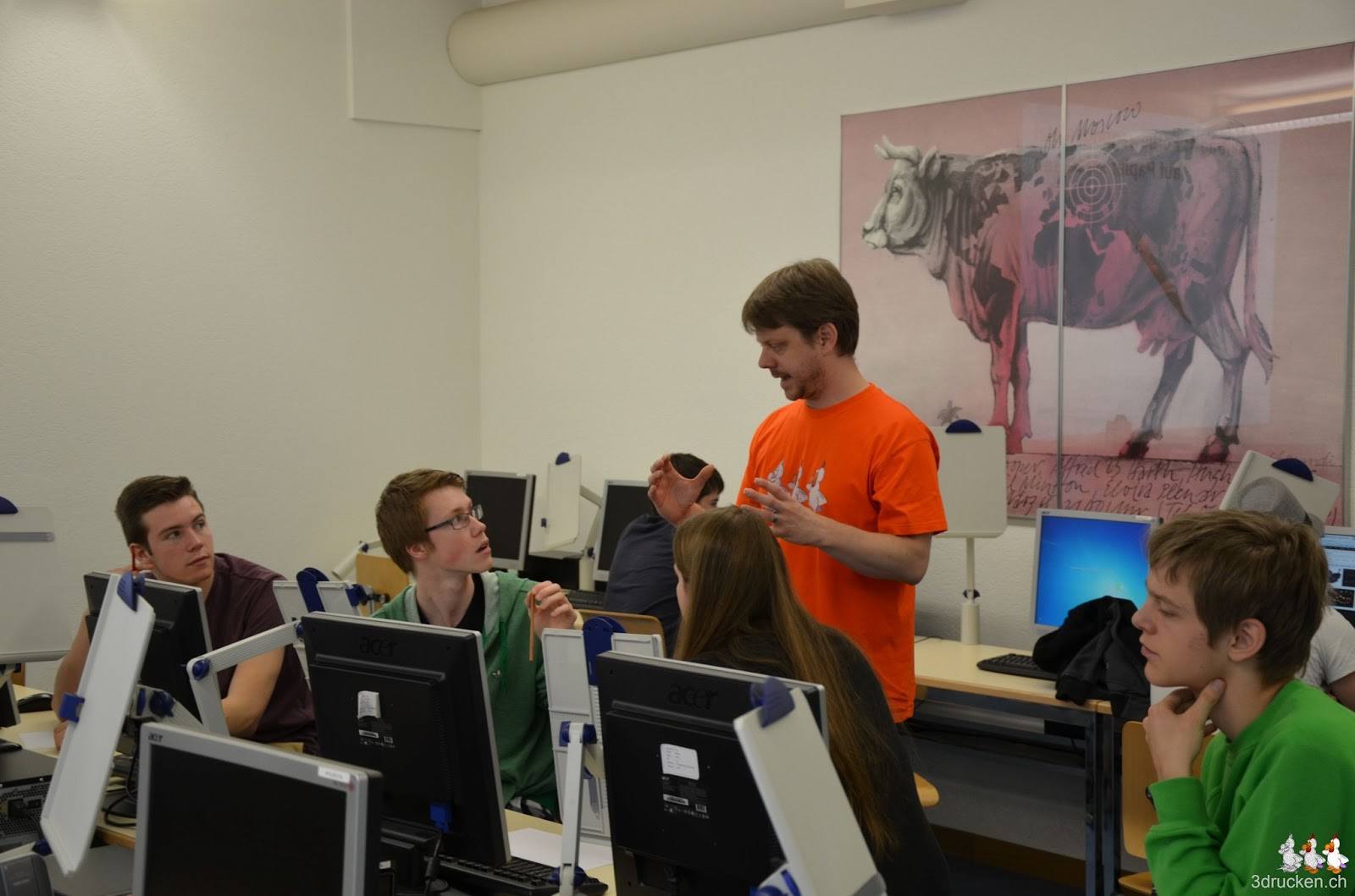 Unser Einsatz gestern am EF-Tag Informatik am Gymnasium Kirchenfeld bei Martin Lehmann und Sebastian Forster war ein voller Erfolg. Wir haben mit einer Gruppe von 8 Leuten den Workflow von der Idee bis zum fertig gedruckten Objekt durchgespielt. Die Schülerinnen und Schüler zeichneten Fortbewegungsmittel und eines davon haben wir dann auf dem Ultimaker ausgedruckt. Zum Abschluss fand eine Präsentation mit allen Schülerinnen und Schülern statt, dafür wurde auch das kurze Video erstellt.
