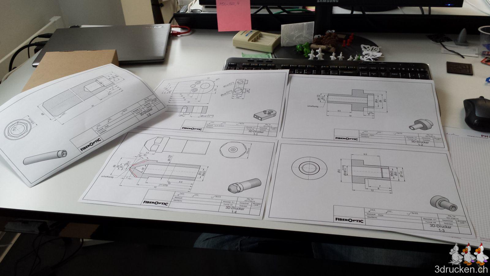 FiberOptic hat uns auch die Pläne, ein extra angefertigtes Werkzeug zur leichteren Düsenmontage, und weiteres Ersatzmaterial für die neue Düse überlassen. Es sind total fünf neue Teile die als Ersatz für den alten Druckkopf mit Block, Düse und Isolator benötigt werden.