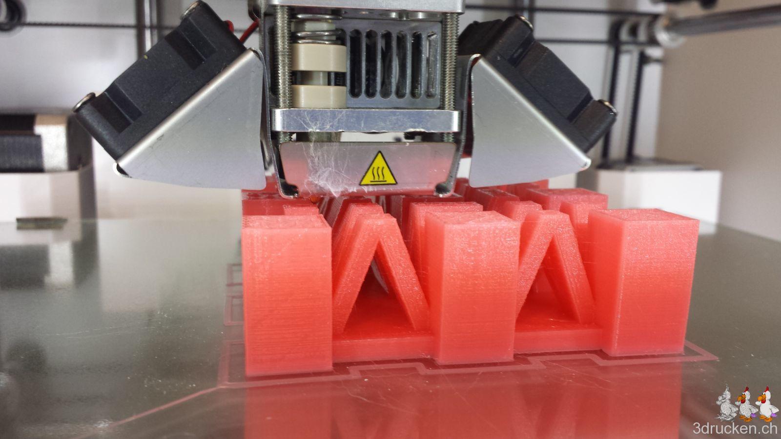 Die neue Düse hat nun ca. 200 Druckstunden auf dem Buckel, in denen sie bis auf zwei Ausnahmen perfekt funktioniert hat. Beide Male liess sich das Problem durch eine kurze Düsenreinigung mit Nylon, jedoch ohne Demontage leicht beheben. Demontiert haben wir bisher nur die Lüfterverkleidung, um das unscharfe Foto zu machen.