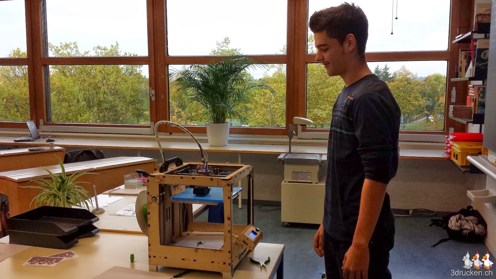Das Einrichten der beiden Drucker in der Schule Ittigen dauerte diesmal etwas länger, da wir erst noch den Extruder-Verschluss reparieren mussten. Die Schülerinnen und Schüler liessen wir dann heute in 3er- und 4er-Gruppen ihre vorgefertigten Namensanhänger selber ausdrucken. Wir beginnen in unseren Projekten nun meist so, und lassen die Schülerinnen und Schüler erst den letzten Schritt des Druckens von GCode ausführen, bevor sie danach an die eigenen Designs gehen. Die Anhänger eignen sich sehr gut für diesen Test, da sie schnell gedruckt sind, die Schülerinnen und Schüler wissen was es gibt, und das Objekt ihren Namen enthält, bzw. aus ihrem Namen besteht. Ein weiterer Schritt im Herbstprojekt der Klasse 8B.