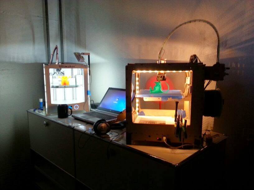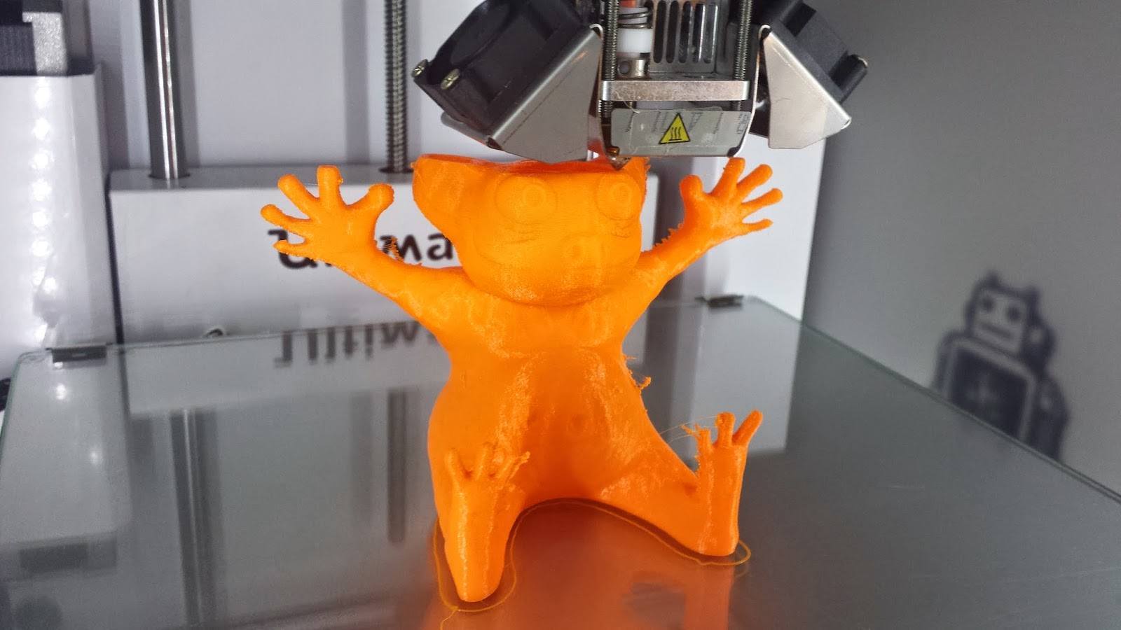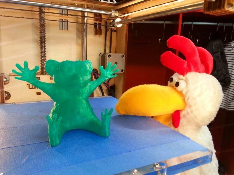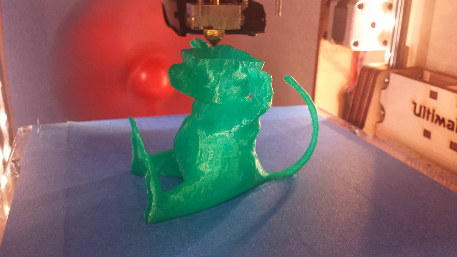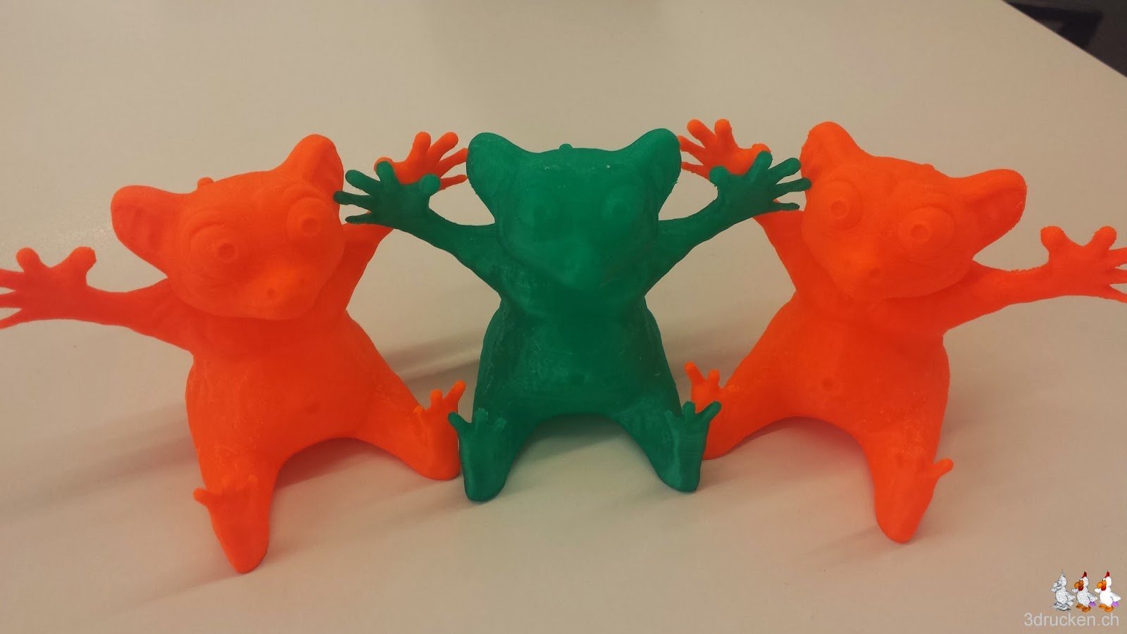 Wir haben nun die ersten Testdrucke im neuen Lab gemacht, und zwar die beiden orangen Koboldmakis auf dem Ultimaker 2 und der grüne Koboldmaki auf dem Ultimaker 1. Die Resultate sind beeindruckend, besonders deswegen, weil wir die kleinen Kerlchen allesamt hohl gedruckt haben.
