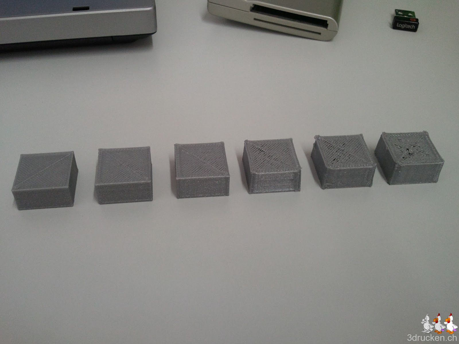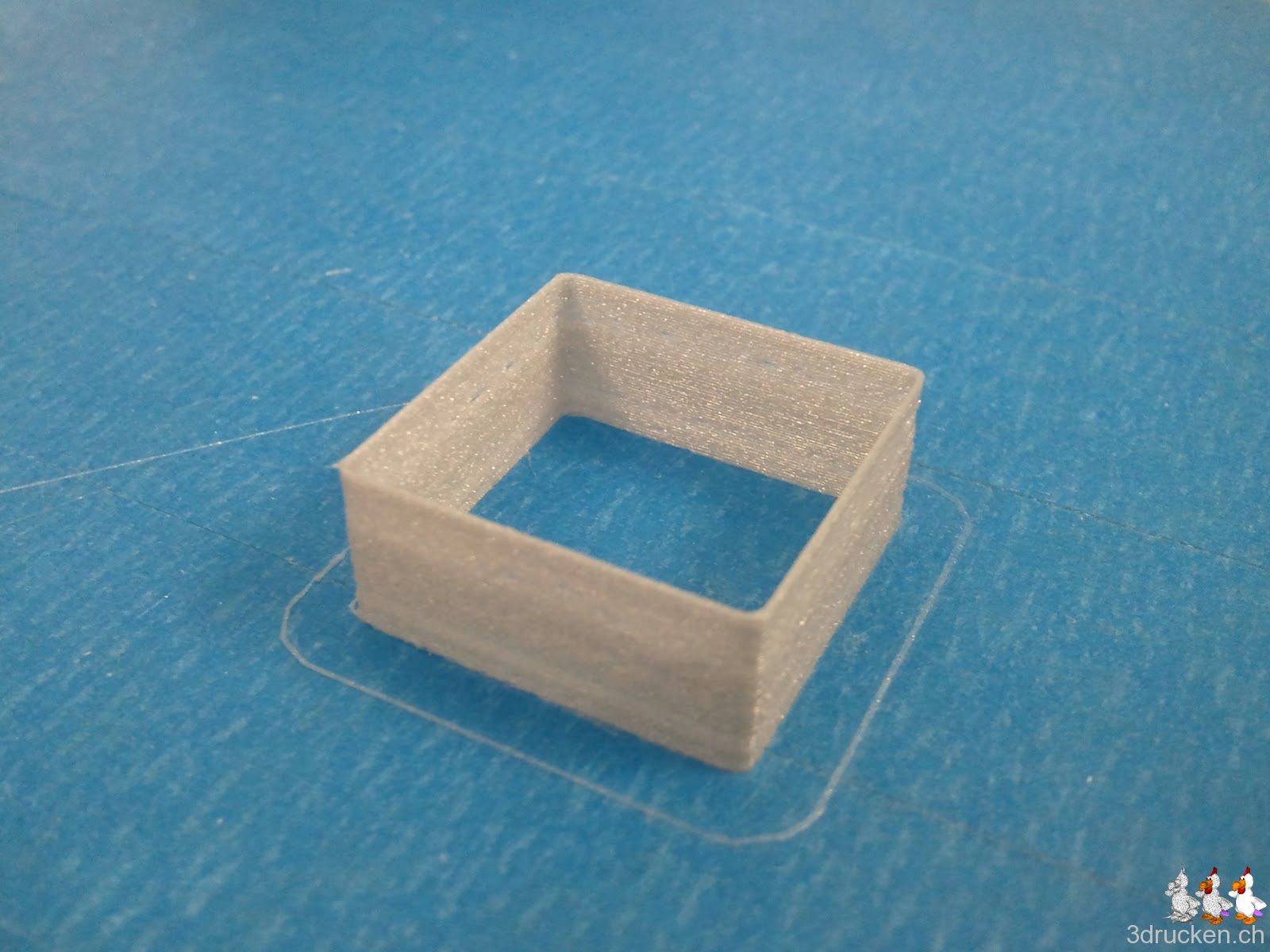 Unser Windows-Notebook wollte danach zwar via Cura bei der Firmware-Aktualisierung und bei den Endstopper-Tests die Verbindung mit dem Drucker halten, den Druckbefehl konnten wir aber nicht erfolgreich auslösen. Das Mapping der COM-Schnittstellen auf USB ist nicht gerade optimal, hat aber nichts mit Ultimaker zu tun. So haben wir die gcode-Datei dann auf die SD-Karte geladen und vom Ulticontroller aus den Druckbefehl gegeben. Hat wie man auf den Bildern sieht gut funktioniert.