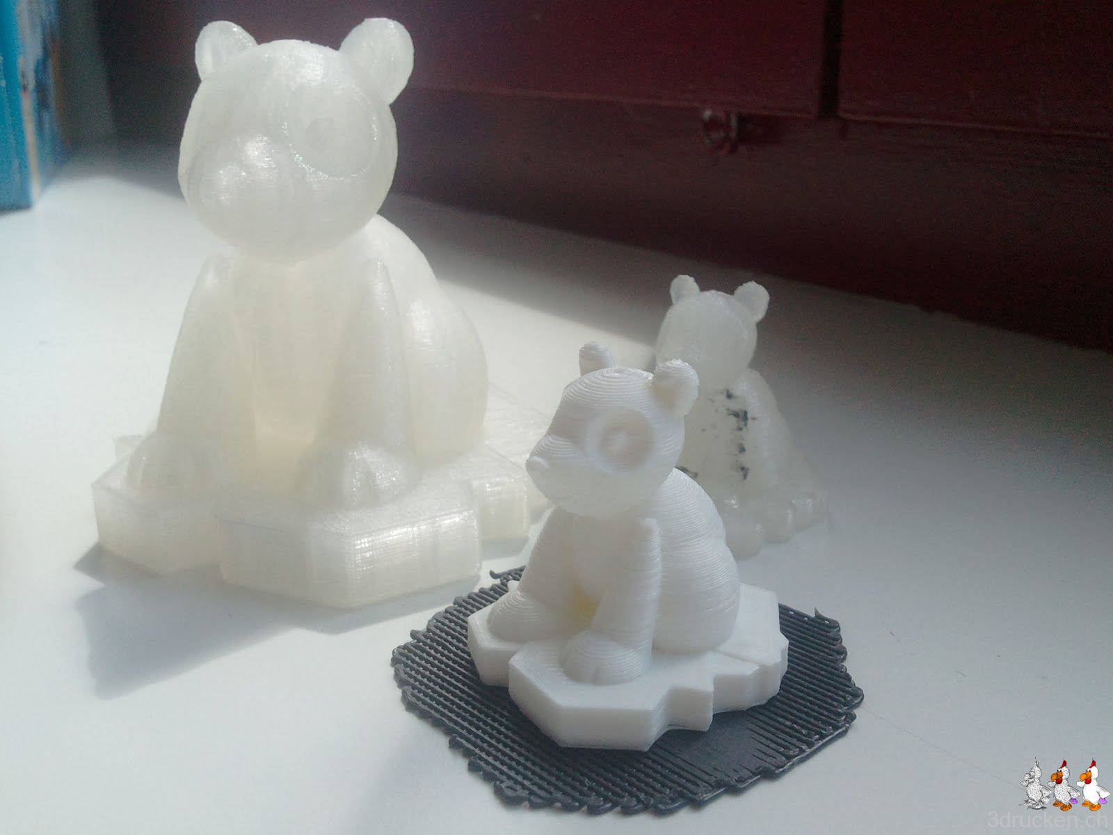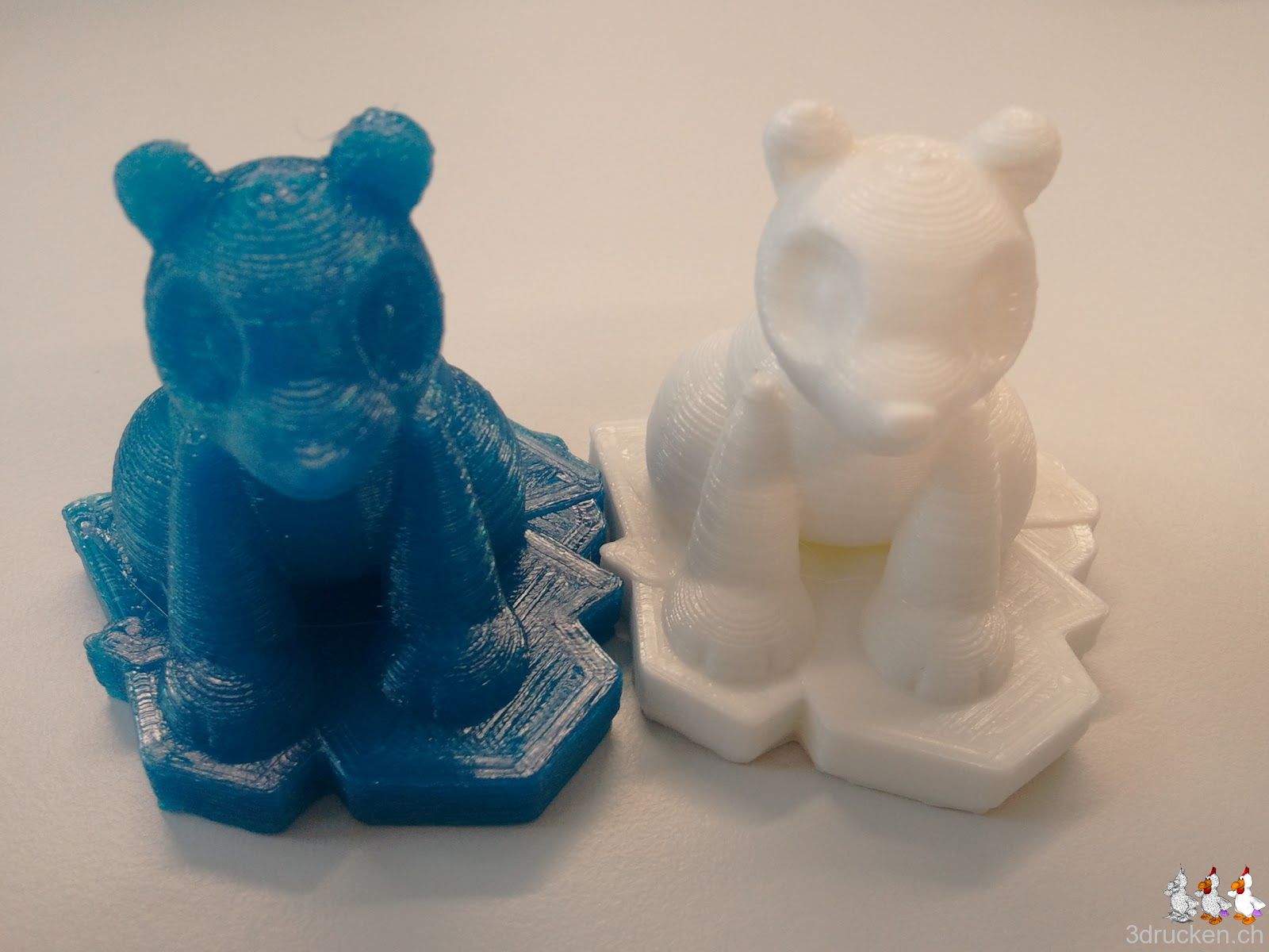 Und irgendwie auch noch richtig schön, so frisch gereinigter Druckkopf und die Drucktemperatur für BfB-PLA auf 210° C angepasst, Schraube beim Feeder auf 13 mm angezogen. Nun kommt das blaue Fabberworld-PLA nochmal zum Test. Wir versuchens mit den selben Einstellungen wie für BfB-PLA.
