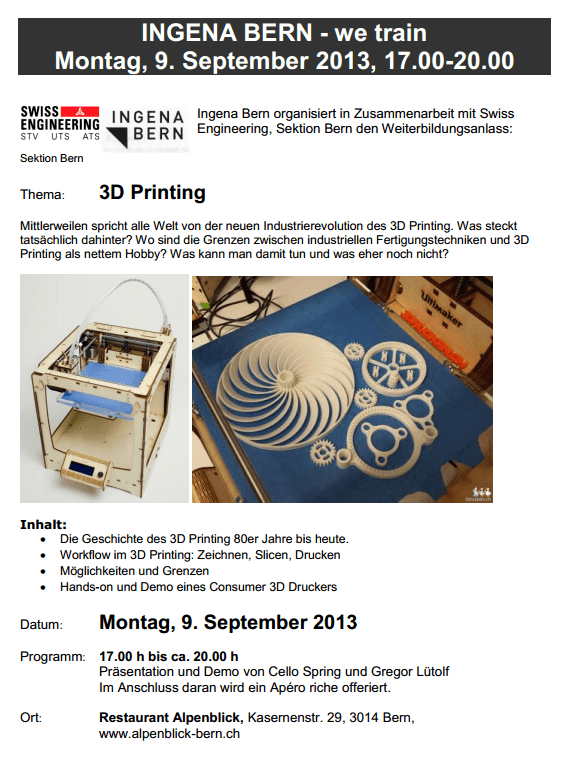 Montag bei der INGENA Bern (Anmeldung erforderlich):
