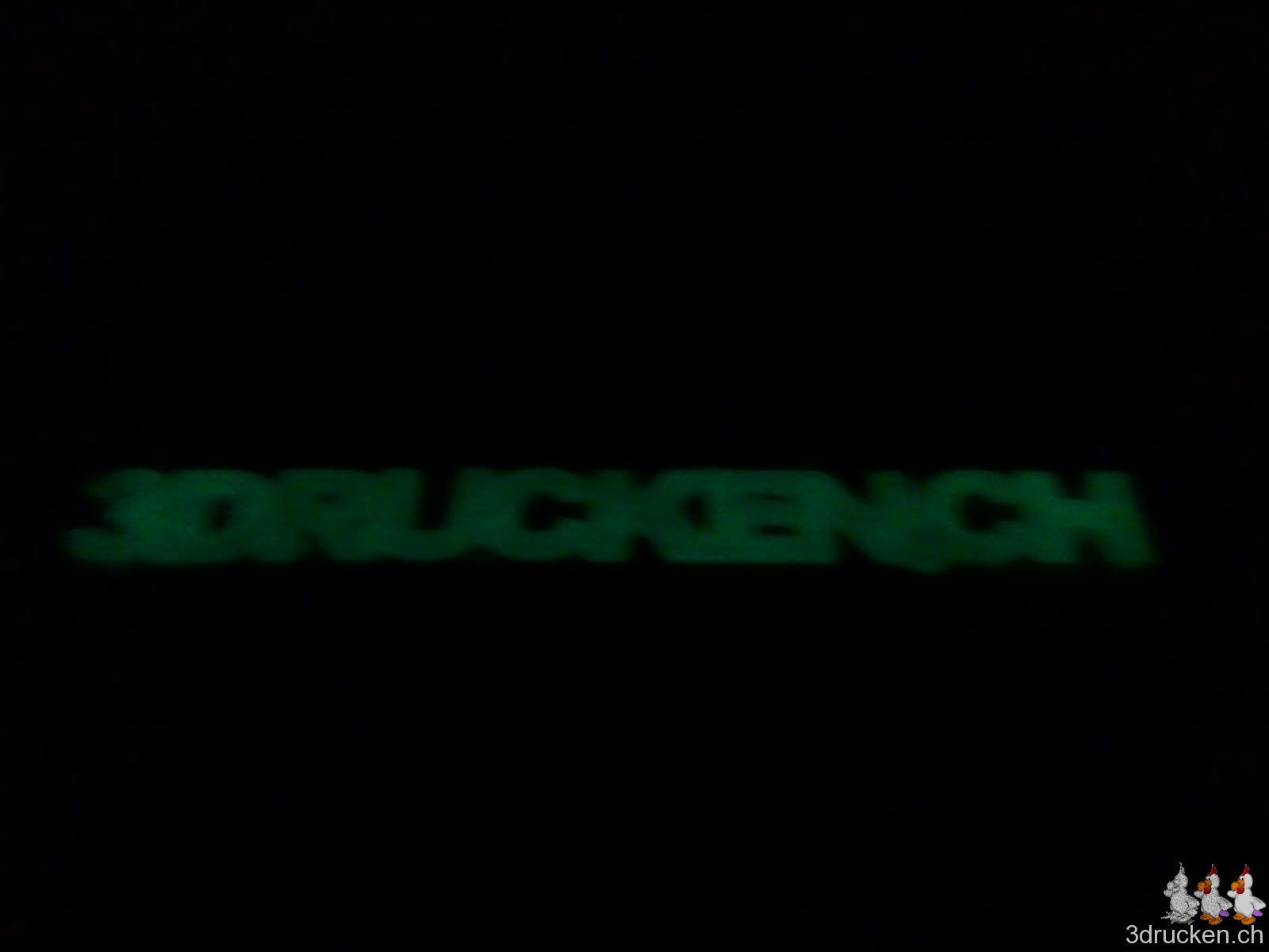 Mit etwas Nähmaschinenöl auf die Spitze des PLA-Drahtes nachtleuchtend grün von Fabberworld, passt es auch in unseren Ultimaker. Leider ist der Durchmesser etwas grösser als beim von uns bisher verwendeten Filament. Wir haben nachgemessen und kommen so auf 3.05 - 3.1 mm. Trotzdem konnten wir unseren Schriftzug im 3. Anlauf dann erfolgreich drucken. So sollten wir unseren Drucker auch nachts wiederfinden können, wenn er mal ausnahmsweise nicht läuft.