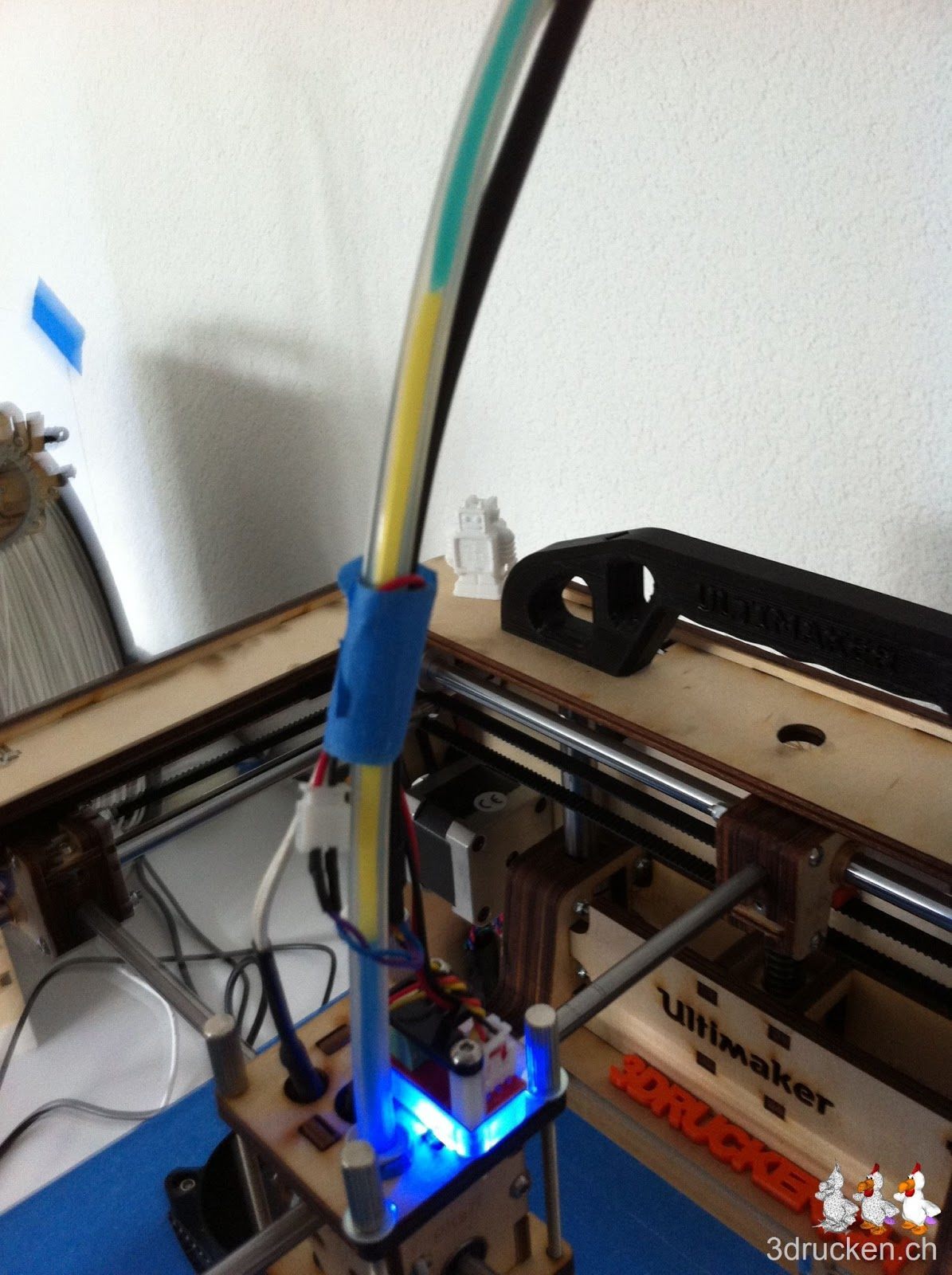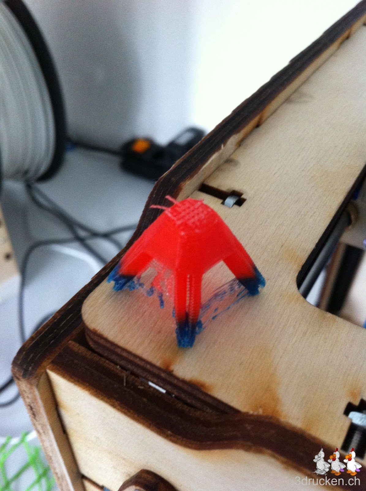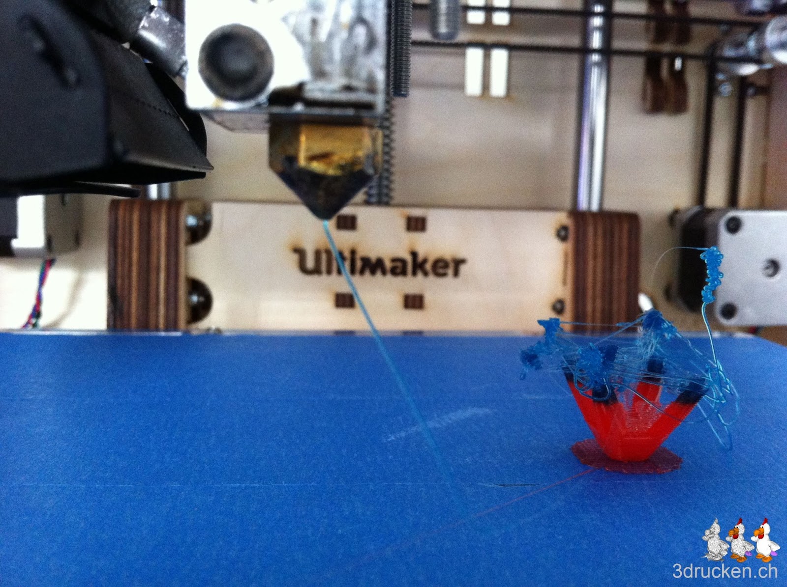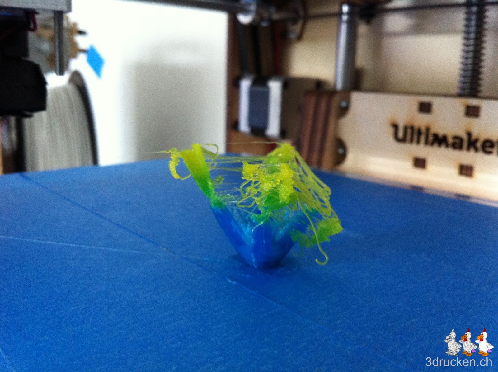 Kurz nach dem ersten Farbwechsel löste sich ein Teil vom Objekt und vorbei war der Spass. Anschliessend starteten wir einen zweiten Versuch, wo aber genau dasselbe passierte. Es ist noch anzufügen, dass wir ein anspruchsvolles Objekt von Dizingof ausdrucken wollten.