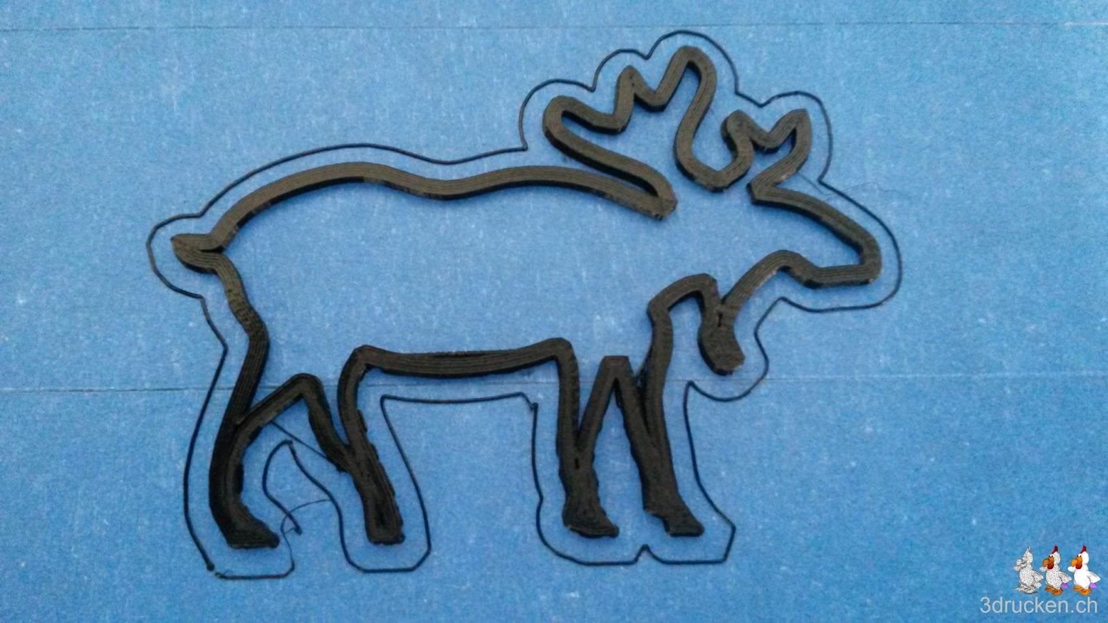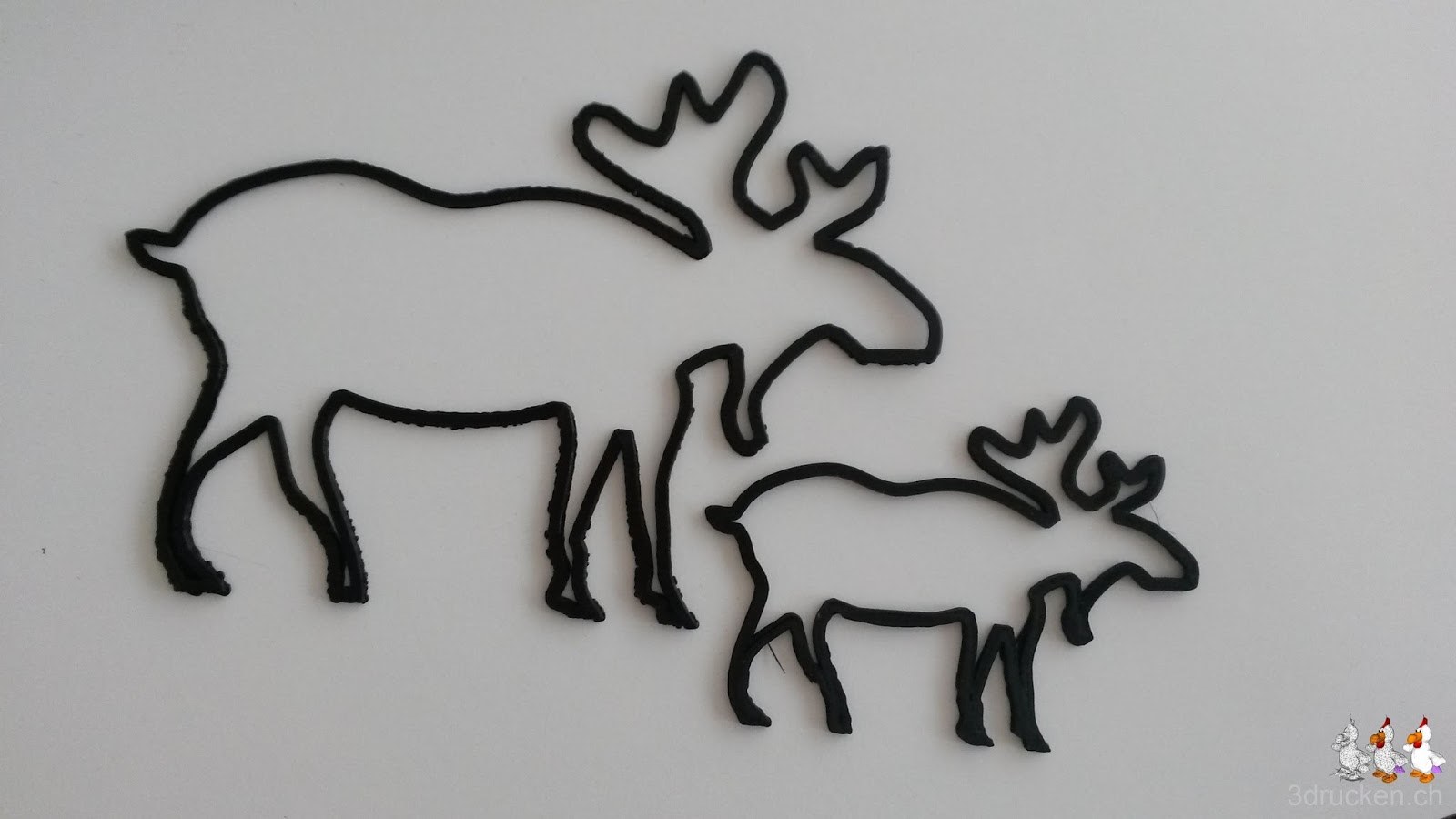 So konnten wir den Fensterschmuck als Umriss drucken. Die Elche, welche wir in zwei verschiedenen Grössen druckten, sind jeweils 2mm dick.