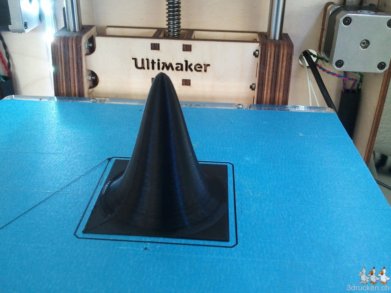 Schöner Druck aus schwarzem SwissRepRap-PLA auf dem ersten Ultimaker bei 215° C. Generiert wurde die Oberfläche von Andrea Cantieni in R. Weitere Infos zum Workflow von R zum 3D-Drucker folgen in einem der nächsten Posts.
