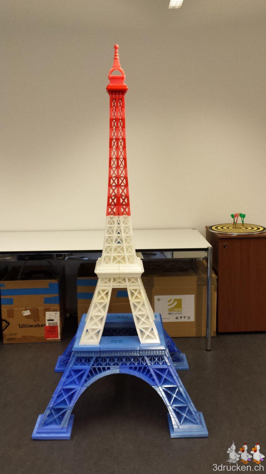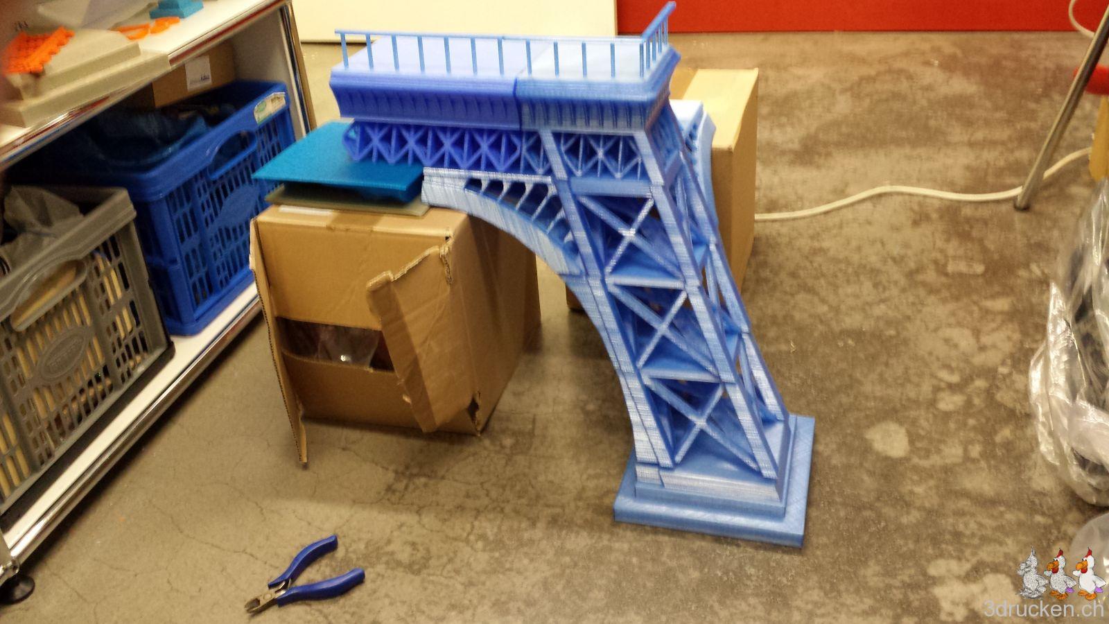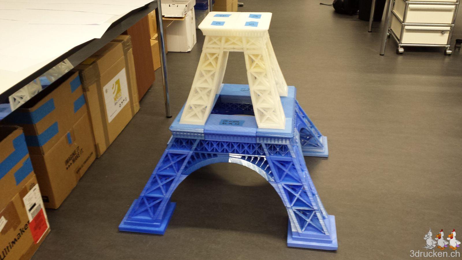 Das Modell für unseren grossen Eiffelturm ist auf Thingiverse verfügbar, falls ihr den Turm für Zuhause mal kurz nachdrucken möchtet.