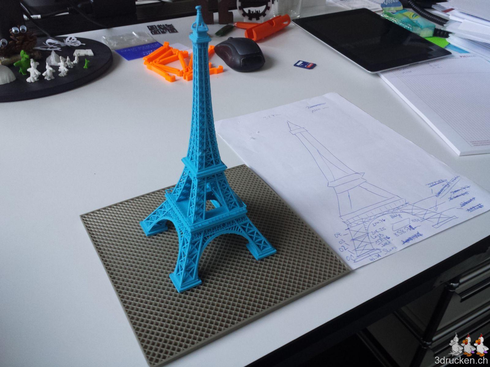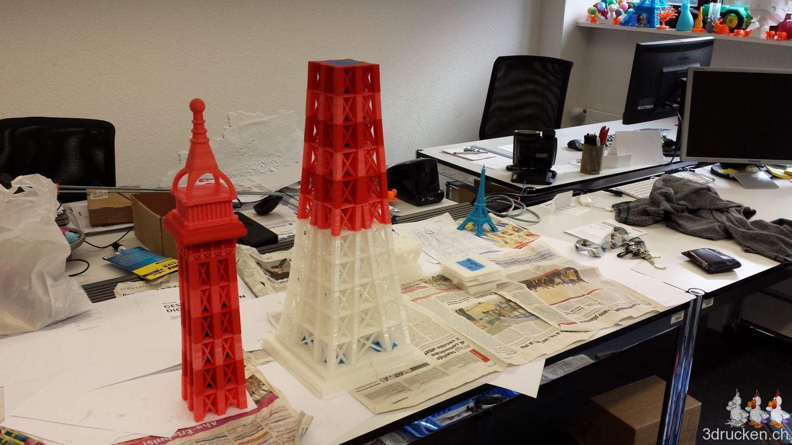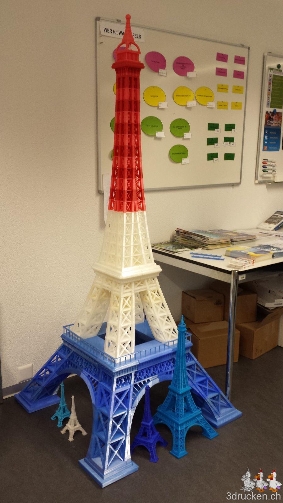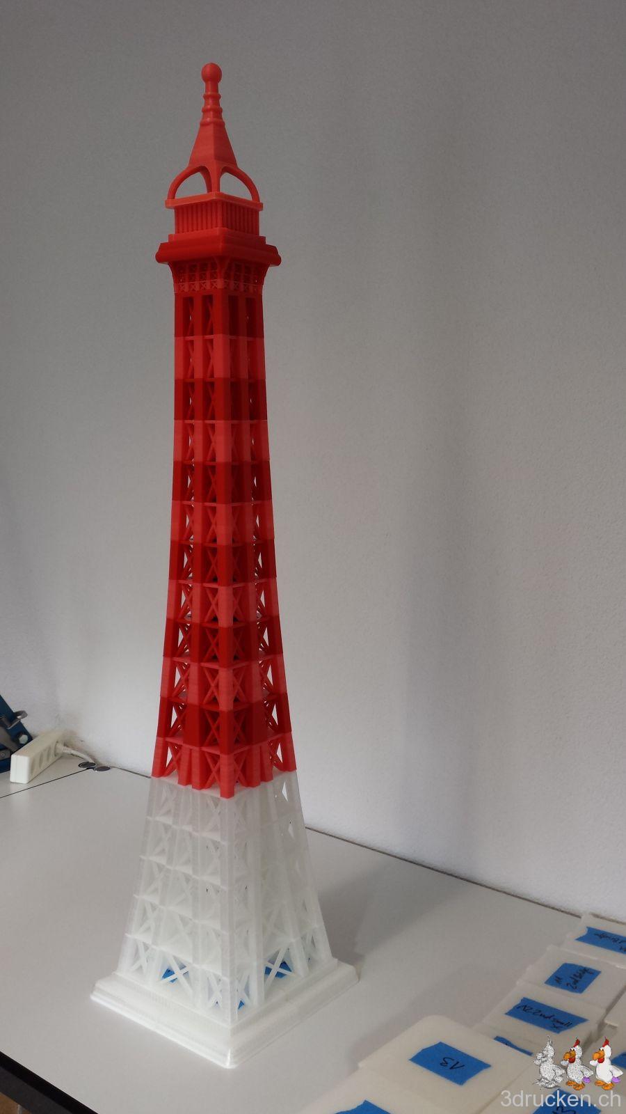 Das Modell für unseren grossen Eiffelturm ist auf Thingiverse verfügbar, falls ihr den Turm für Zuhause mal kurz nachdrucken möchtet.