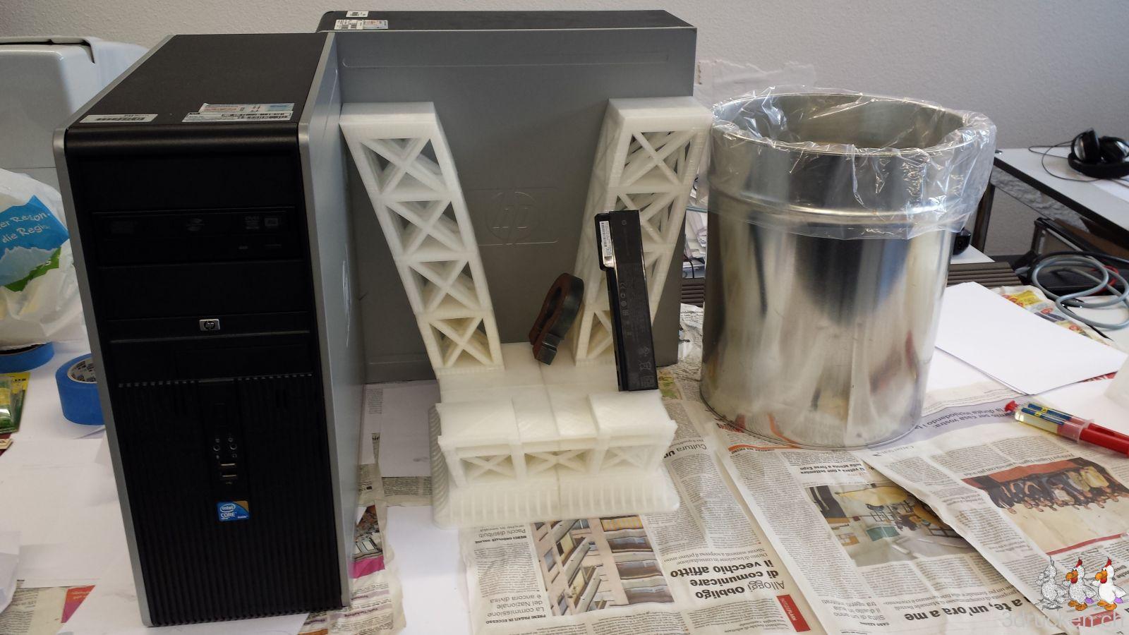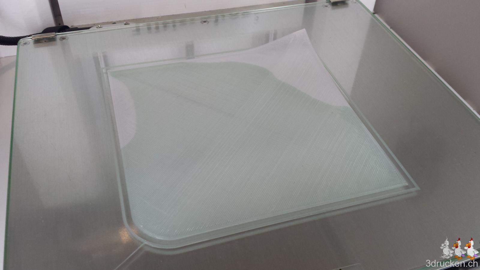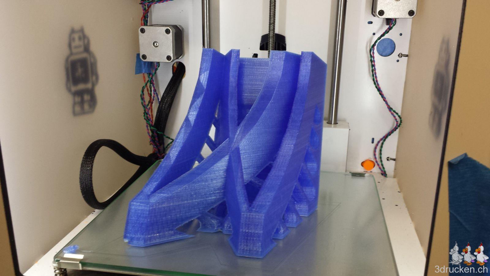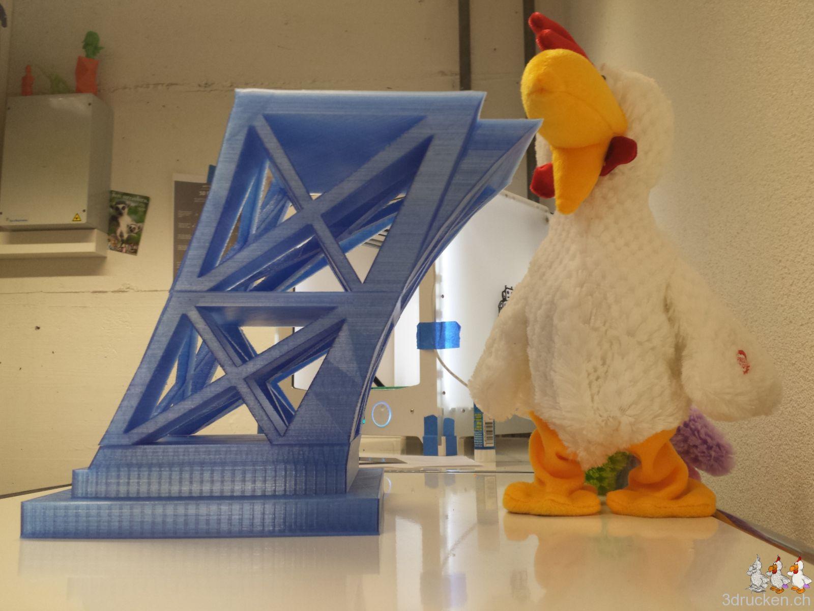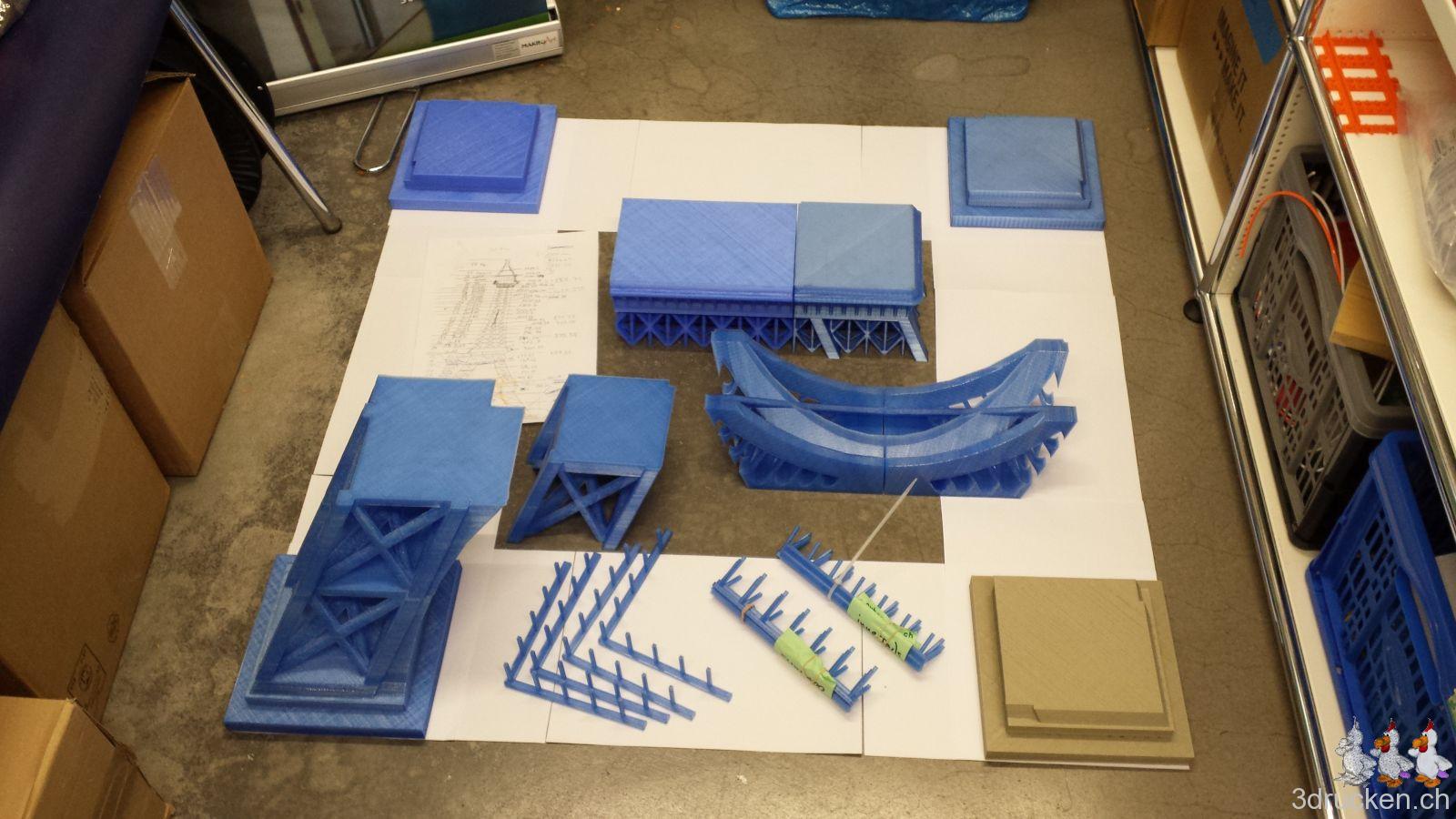 Es sollte zudem ein Test werden, ob ein solch grosses Modell auch erfolgreich hergestellt werden kann, bzw. ob wir 3D-Drucken inzwischen soweit im Griff haben, dass wir das können. Eine weitere Frage war, welchen Leim man dafür idealerweise verwendet. Es war zudem ein Übungsfeld um zu lernen, wie man auf einem beheizten Tisch eine grössere Fläche ohne Verzug schön drucken kann.
