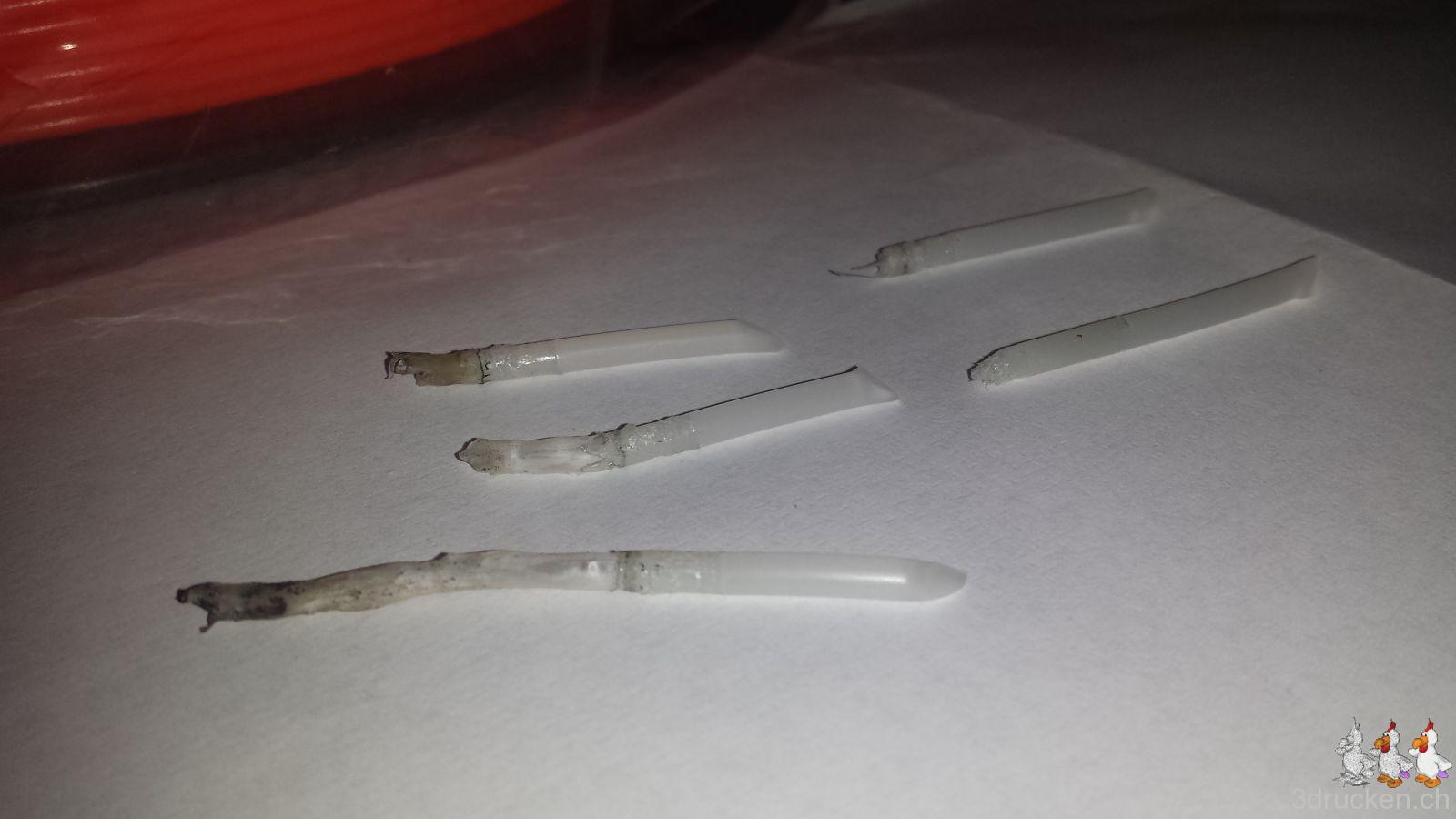 - Material nicht mit Metallpinzette von der Düse nehmen