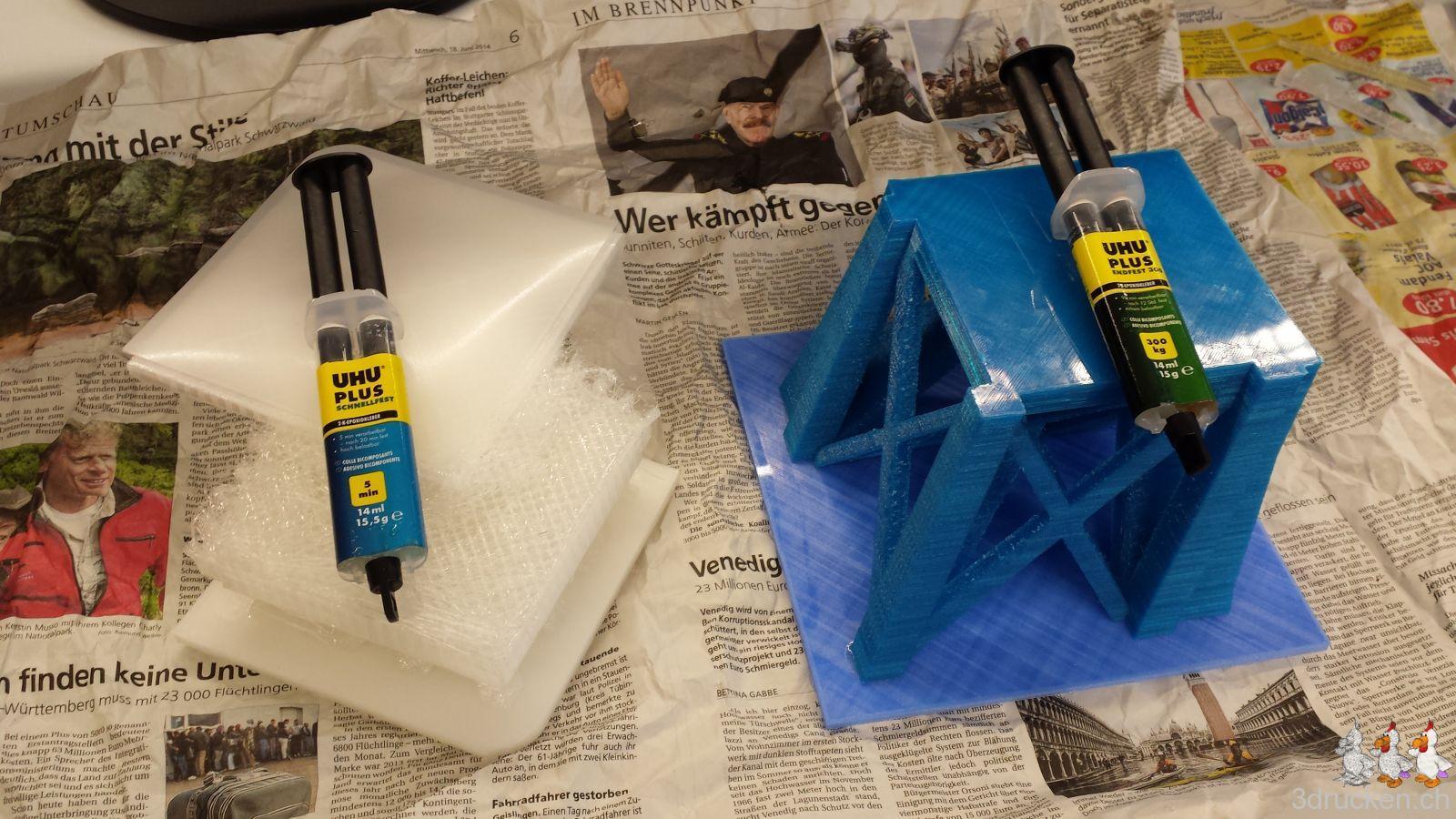 UHU Leim hält sehr gut - Leimstift und etwas höhere Temperatur des Drucktischs verwenden