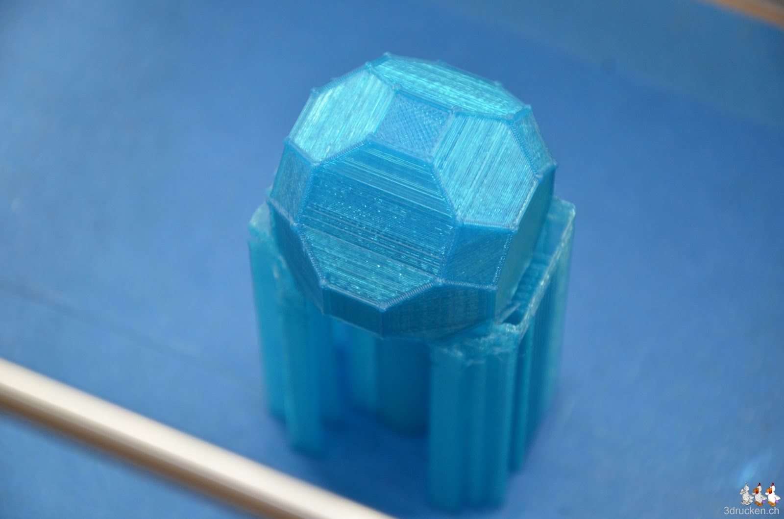 Als nächsten Archimedischen Körper für The Gem, haben wir das Grosse Rhombenkuboktaeder gedruckt. Die Oberfläche dieses Körpers besteht aus 12 Quadraten, 8 Sechsecken und 6 Achtecken. Wir haben zwar aus Gewohnheit mit Support gedruckt, bei diesem Körper wäre aber kein Support notwendig, um ihn drucken zu können. Die Druckzeit betrug 2 h 47 min.