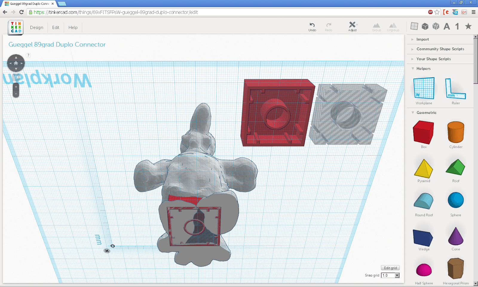 Um den Duplo Steckfuss in die Füsse des Güggels zu integrieren war sowohl das aus OpenSCAD exportierte 2×2 Teil ohne die 4 Höcker oben, und sein Negativ als Loch nötig.
