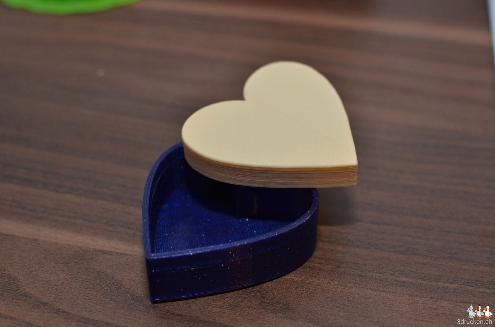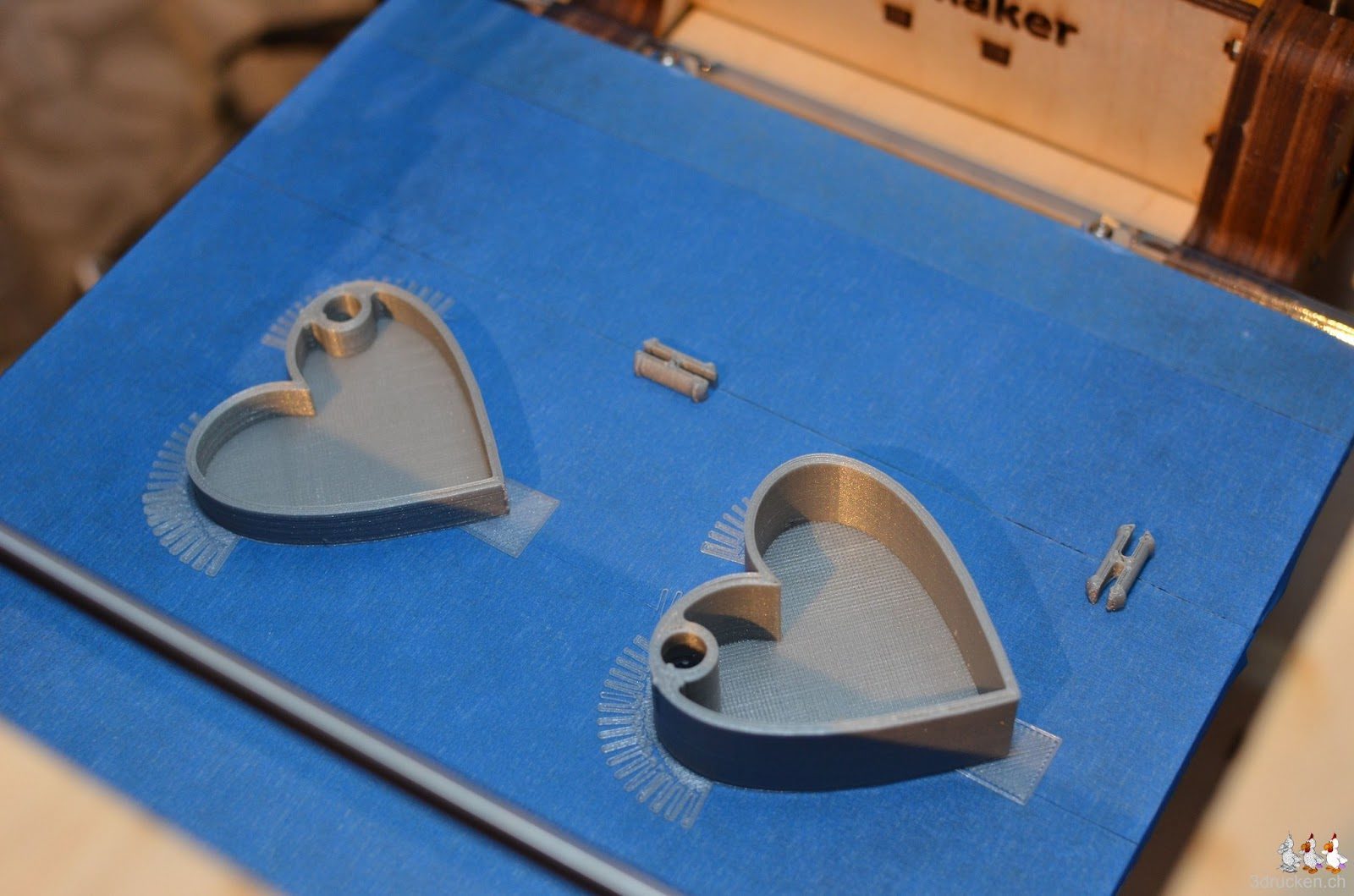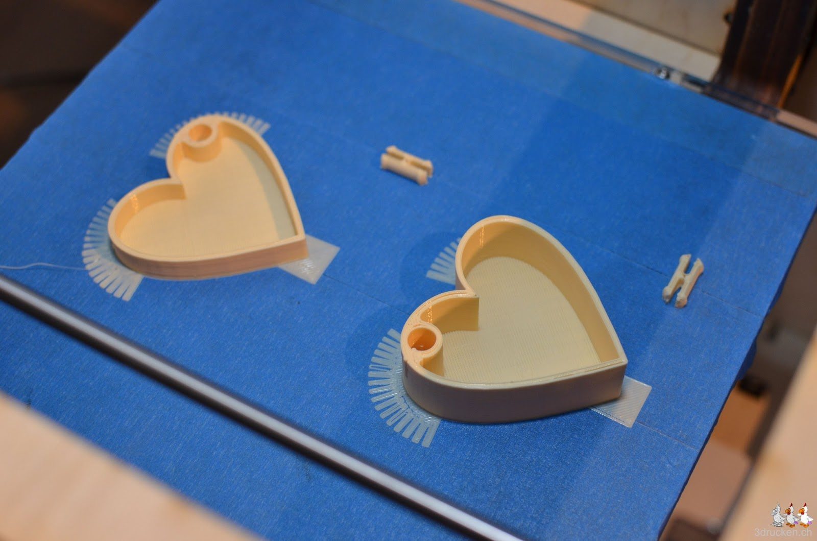 Für das Goldkettchen von Amélie haben wir eine neue Box in Herzform gedruckt. Hier die Testdrucke zweier Modelle von Thingiverse. Das erste haben wir neu entdeckt, das zweite hatte ich schon in vergrösserter Form als Geburtstagsgeschenk für meine Frau gedruckt.