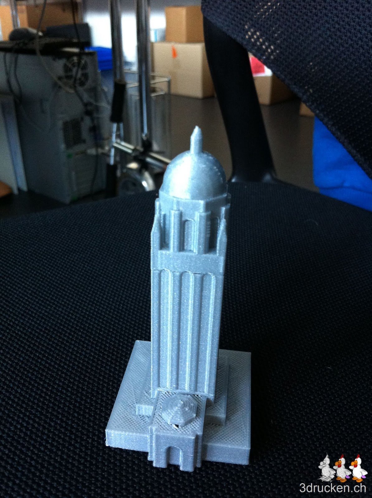 Heute Morgen druckten wir zum Wochenstart einen Hoover Tower aus. Das Objekt wurde im zweiten Versuch schön gedruckt. Gedauert hat das Ganze eine Stunde und 18 Minuten. Geslicet wurde mit der neusten Cura-Version 13.06.4.