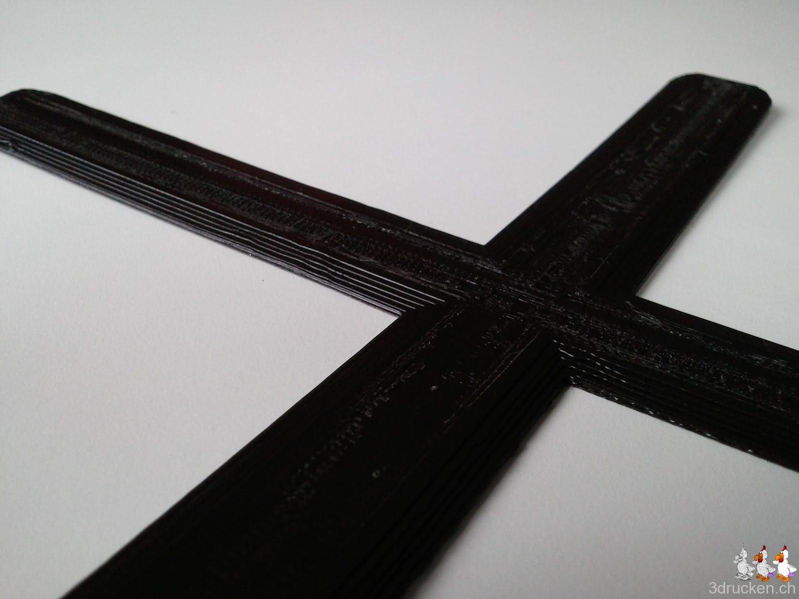 Der Bumerang liegt zum Testen bereit, gedruckt auf dem BfB 3DTouch in 0.25 mm Schichten und 20 % Füllung, wobei kaum Füllung notwendig war, bei den lediglich 10 Schichten ist mit den Deckschichten unten und oben alles gefüllt.