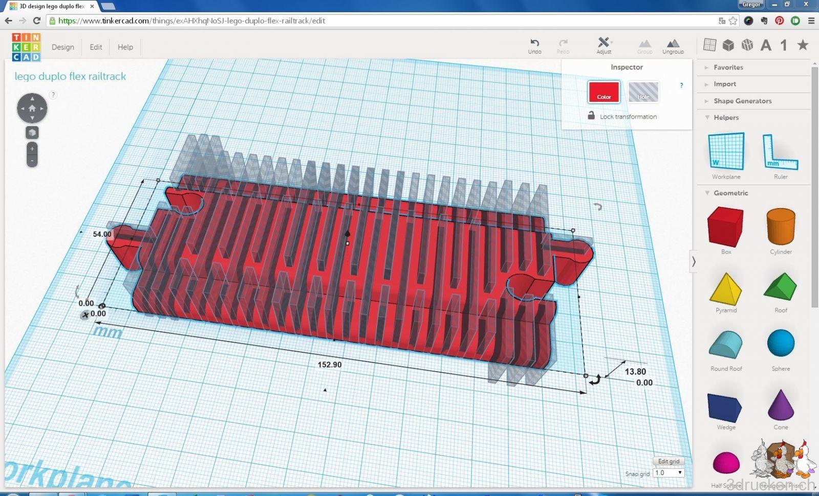 Beim Durchsehen des Dashboards auf Thingiverse haben wir eine geniale Idee von Roman Jurt gefunden, der das Design Duplo Flex Railtrack veröffentlicht hat. Die Idee dahinter: Flexible Schienen für die Brio Spielzeugeisenbahn zu Drucken welche also sowohl als Geraden wie auch Kurven verwendet werden können.